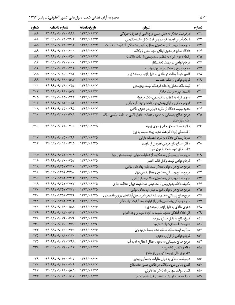 امتیاز و دیدگاه کاربران مجموعه آرای قضایی شعب دیوان عالی کشور (حقوقی) - پاییز 1394 | پژوهشگاه قوه قضاییه