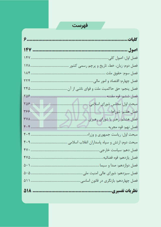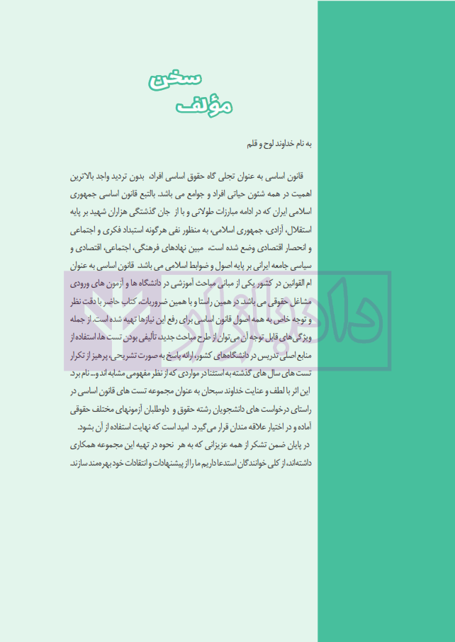 مشخصات و ویژگی کتاب مجموعه پرسش های چهار گزینه ای طبقه بندی شده قانون اساسی | دکتر قلیچ خان و دکتر جعفری