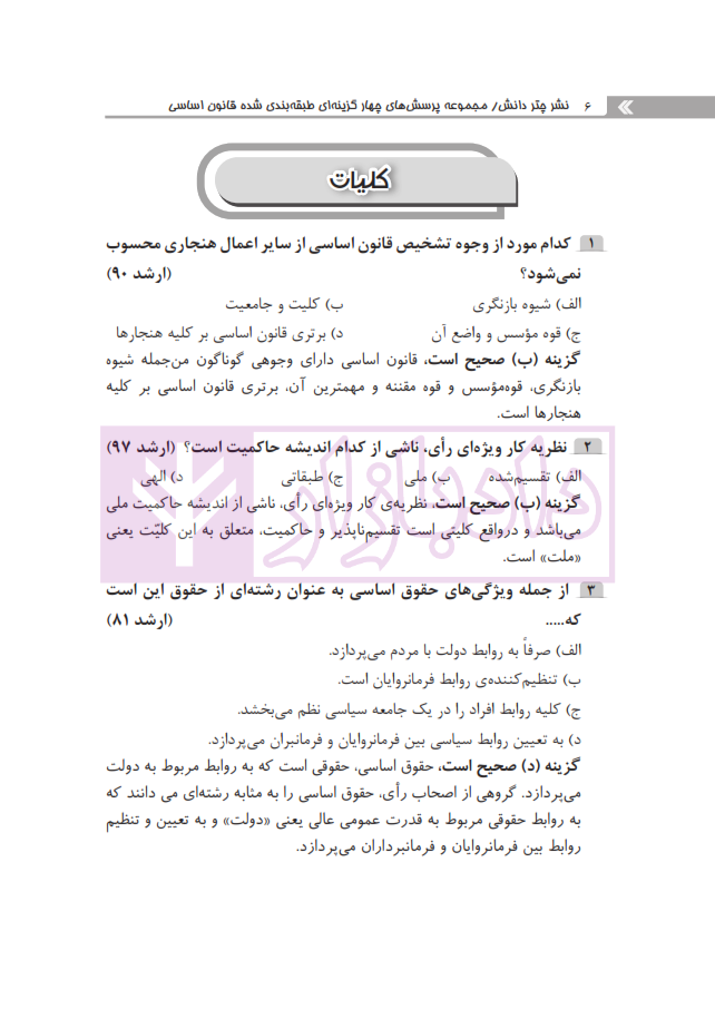 امتیاز و دیدگاه کاربران مجموعه پرسش های چهار گزینه ای طبقه بندی شده قانون اساسی | دکتر قلیچ خان و دکتر جعفری