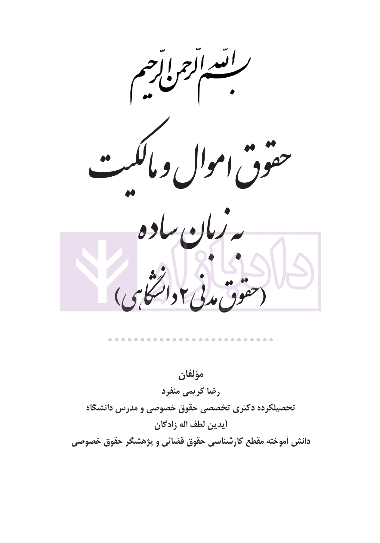مشخصات و ویژگی کتاب حقوق اموال و مالکیت به زبان ساده (حقوق مدنی 2 دانشگاهی) | کریمی منفرد و لطف اله زادگان