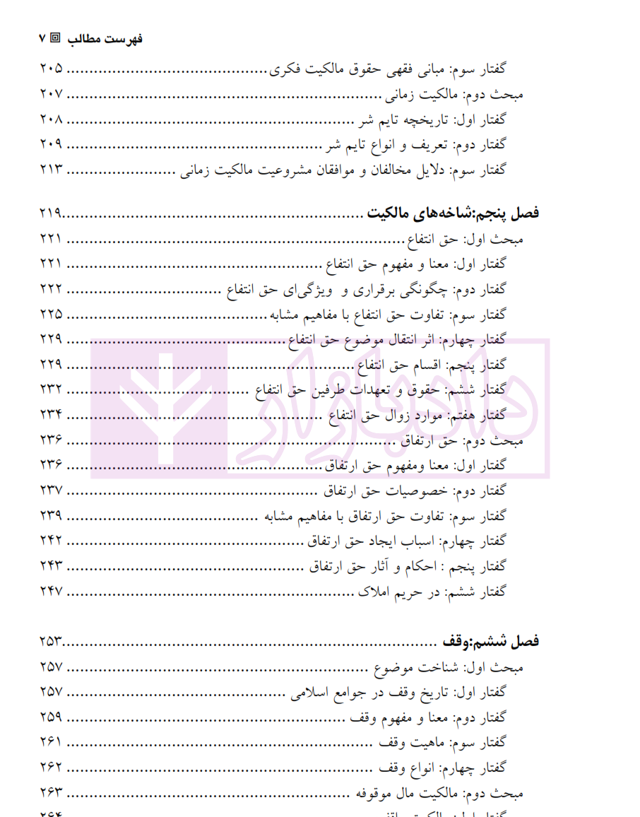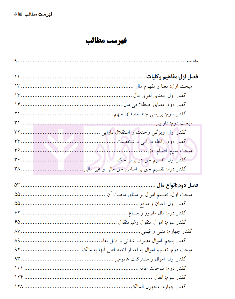 فهرست عناوین حقوق اموال و مالکیت دکتر هاشمی