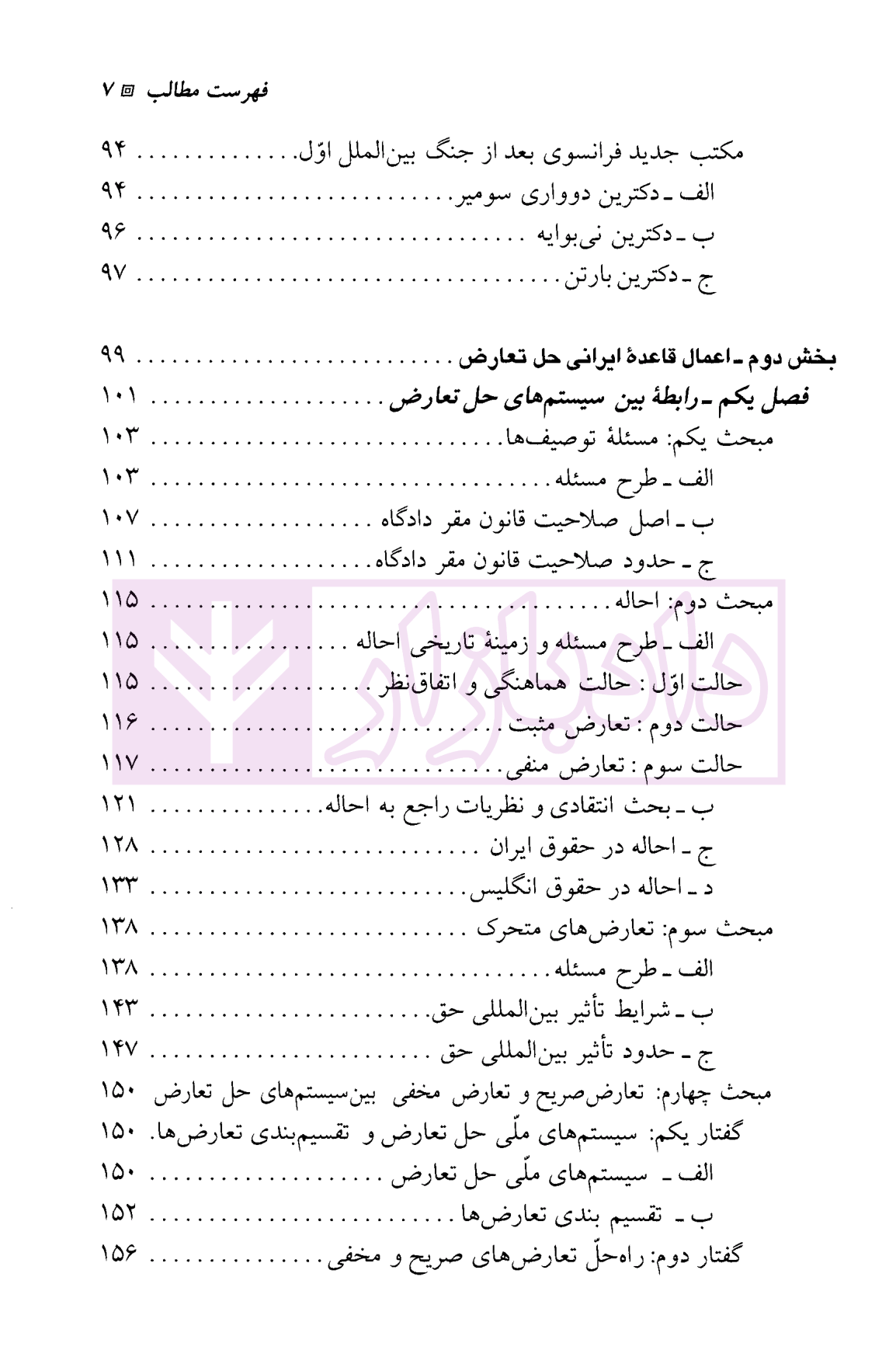 موضوع بحث کتاب حاضر حقوق بین الملل خصوصی شکلی است. قواعد آن اعم از این که دو جانبه(تعارض قوانین) یا یک جانبه(تعارض دادگاه ها) باشند، مسئله را مستقیما حل نمی کنند بلکه صرفا مشخص می سازند که در هر مسئله قانون کدام کشور باید اعمال گردد و دادگاه چه کشوری واجد صلاحیت تست.