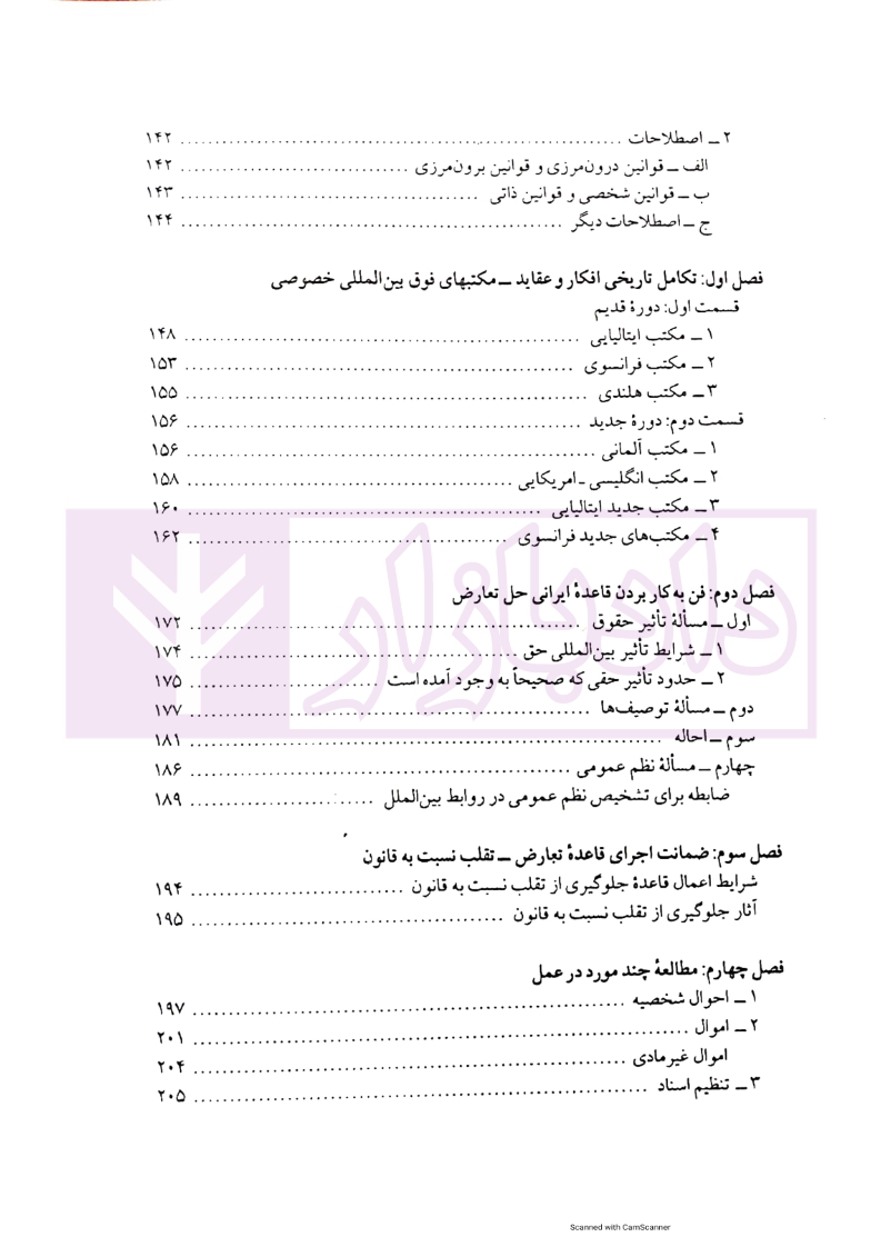 - حاوی اصول و مبانی حقوق بین الملل خصوصی و تعارض قوانین