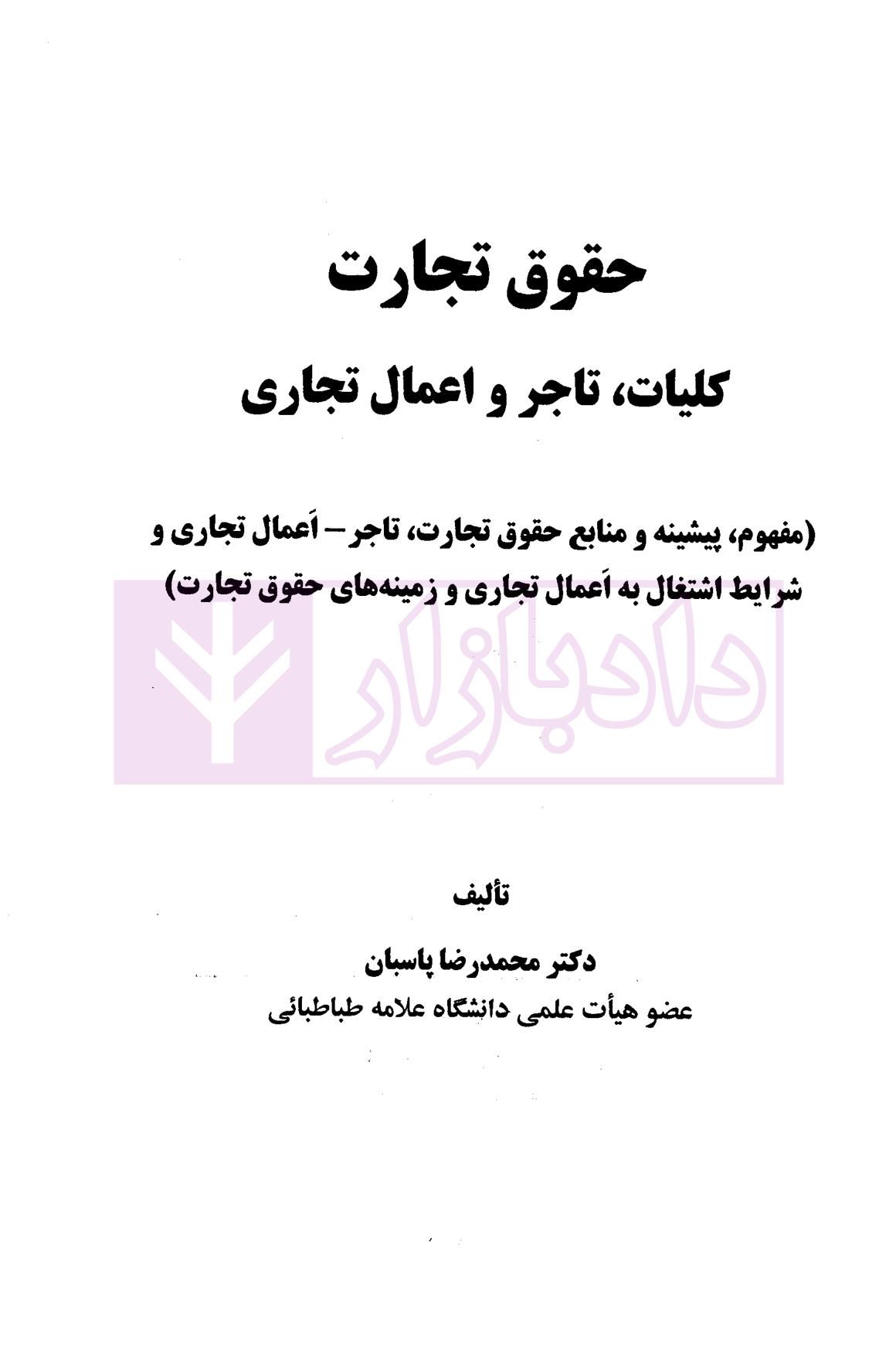 معرفی و فهرست کتاب حقوق تجارت ۱ (کلیات، تاجر و اعمال تجاری) | دکتر پاسبان