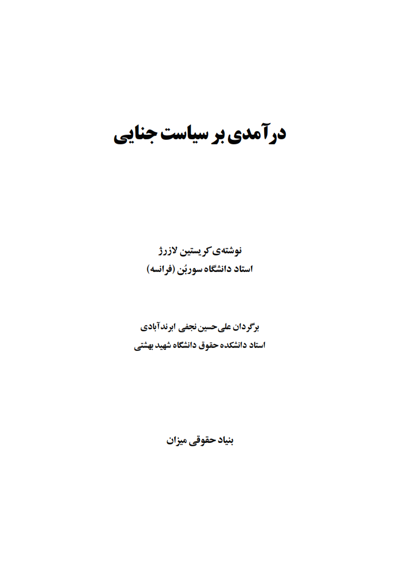 مشخصات و ویژگی کتاب درآمدی بر سیاست جنایی | نجفی ابرند آبادی
