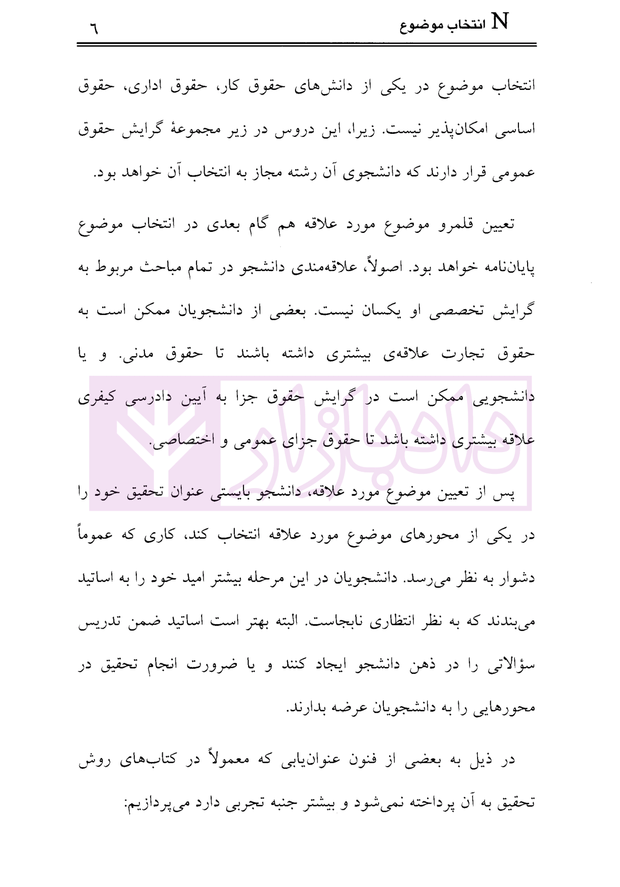 مشخصات و ویژگی کتاب روش تحقیق در علم حقوق، نحوه نگارش پایان نامه | دکتر حیاتی