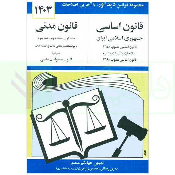 مشخصات و ویژگی کتاب قانون اساسی جمهوری اسلامی ایران – قانون مدنی | منصور