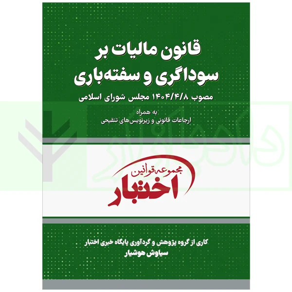 - ارائه قانون مالیات بر سوداگری و سفتهبازی مصوب ۱۴۰۴/۴/۸ مجلس شورای اسلامی