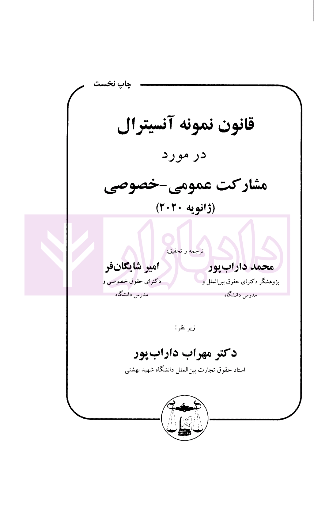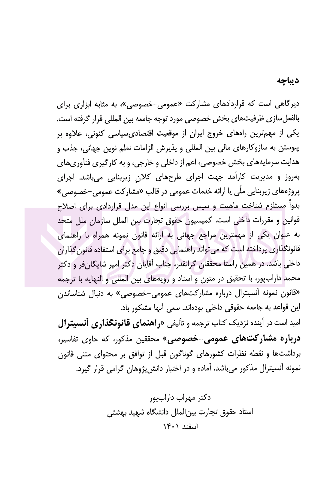 مشخصات و ویژگی کتاب قانون نمونه آنسیترال در مورد مشارکت عمومی-خصوصی | دکتر داراب پور و دکتر شایگان فر