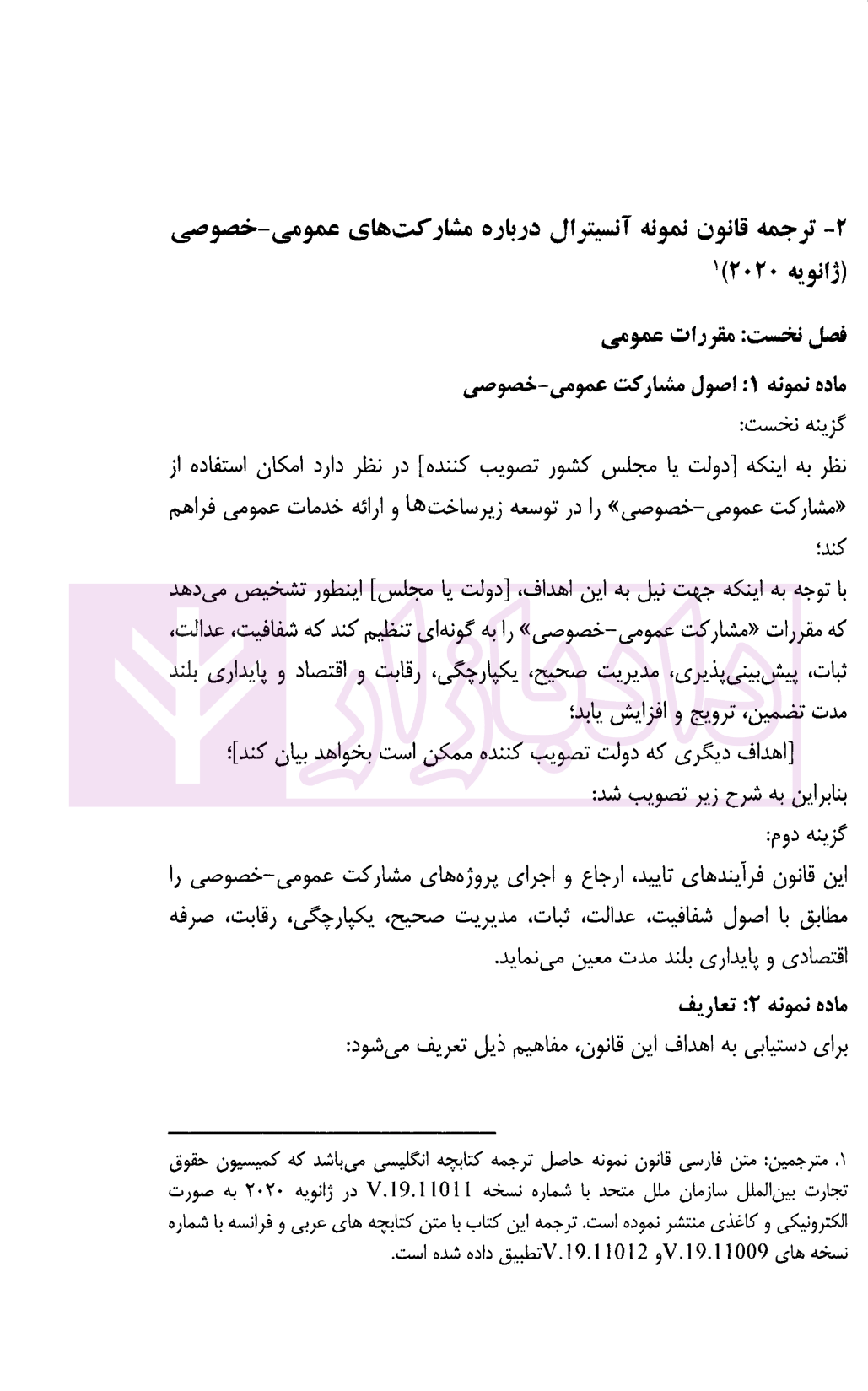 امتیاز و دیدگاه کاربران قانون نمونه آنسیترال در مورد مشارکت عمومی-خصوصی | دکتر داراب پور و دکتر شایگان فر