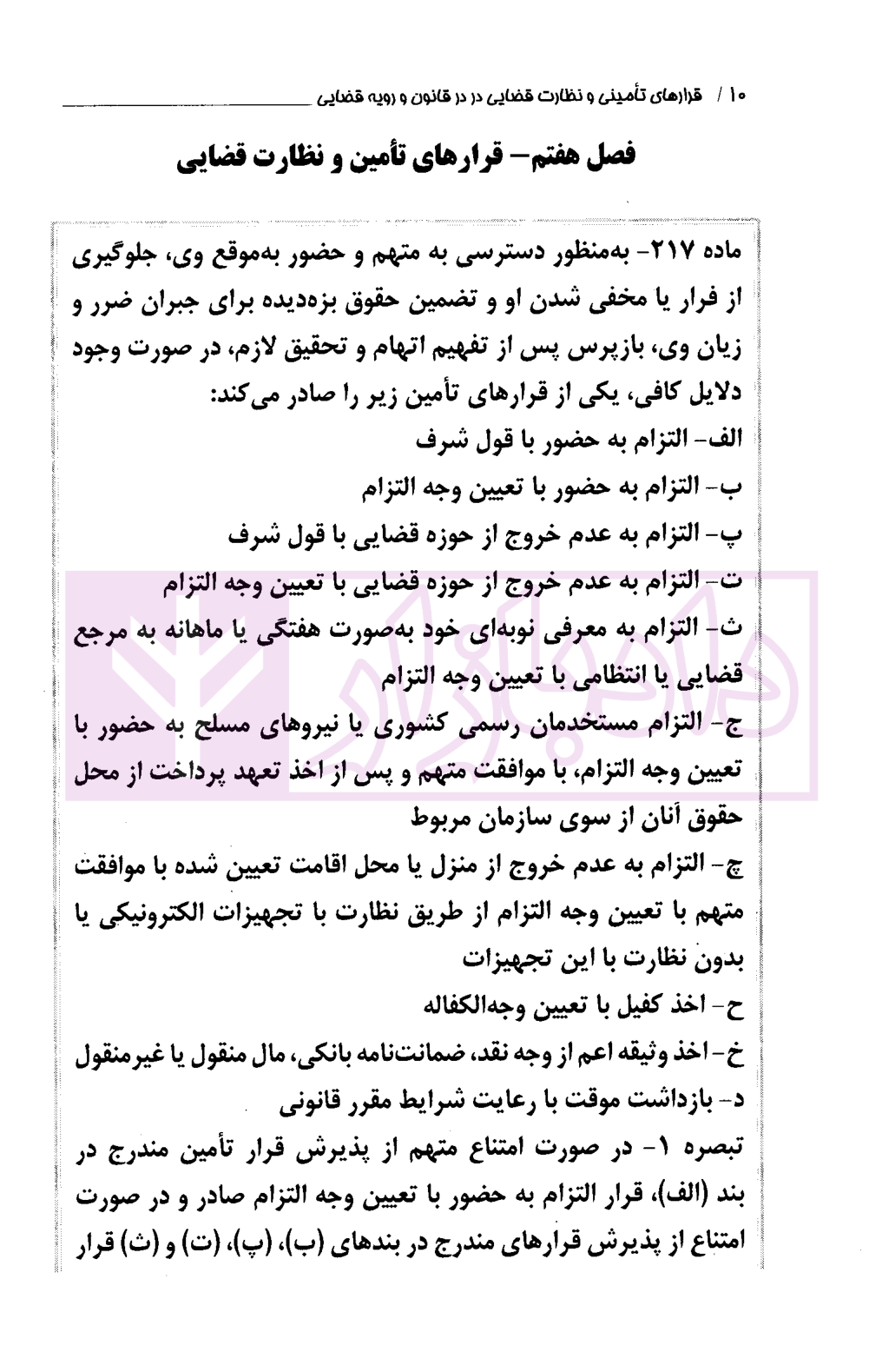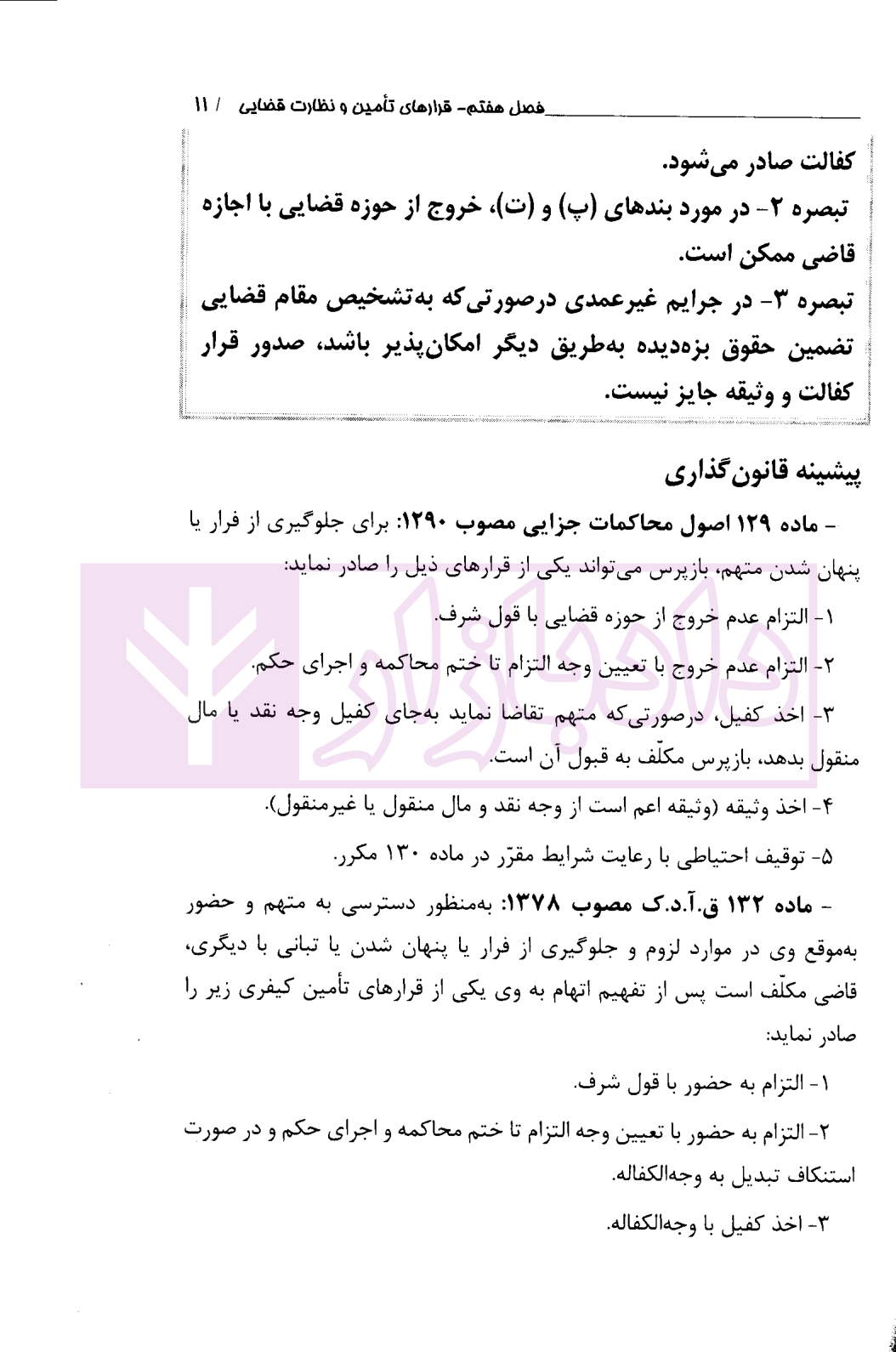 - فصل هفتم قرارهای تامین و نظارت قضایی