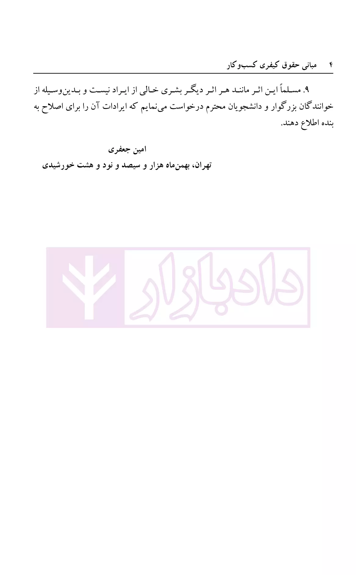 مشخصات و ویژگی کتاب مبانی حقوق کیفری کسب و کار | دکتر جعفری
