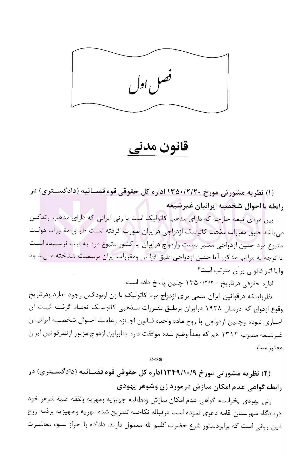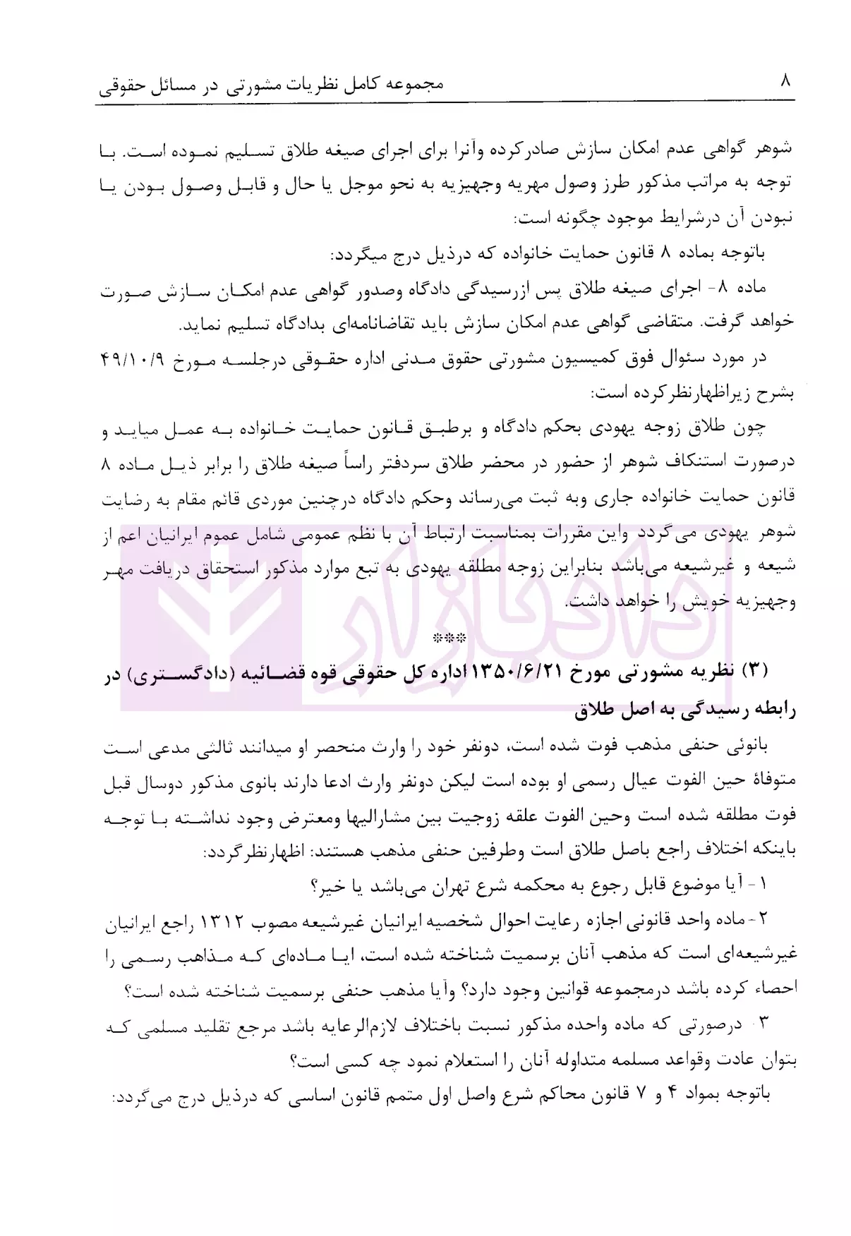 مشخصات و ویژگی کتاب مجموعه دوجلدی نظریات مشورتی اداره کل حقوقی قوه قضاییه در مسائل حقوقی | اباذری فومشی