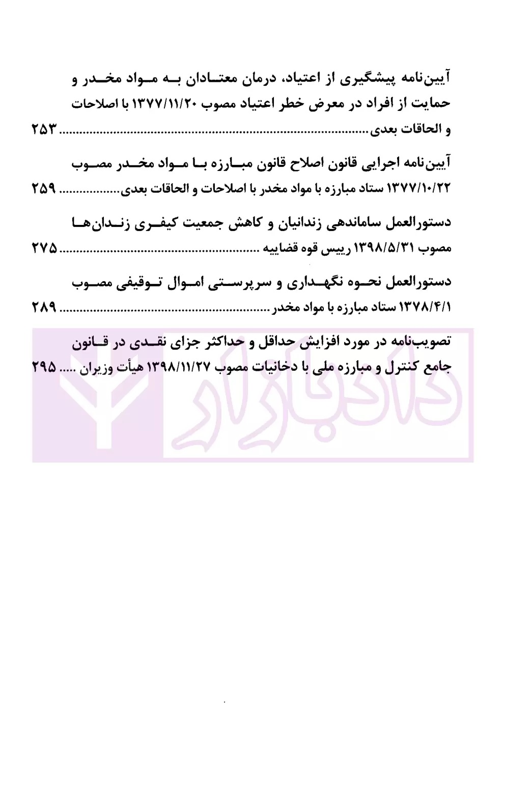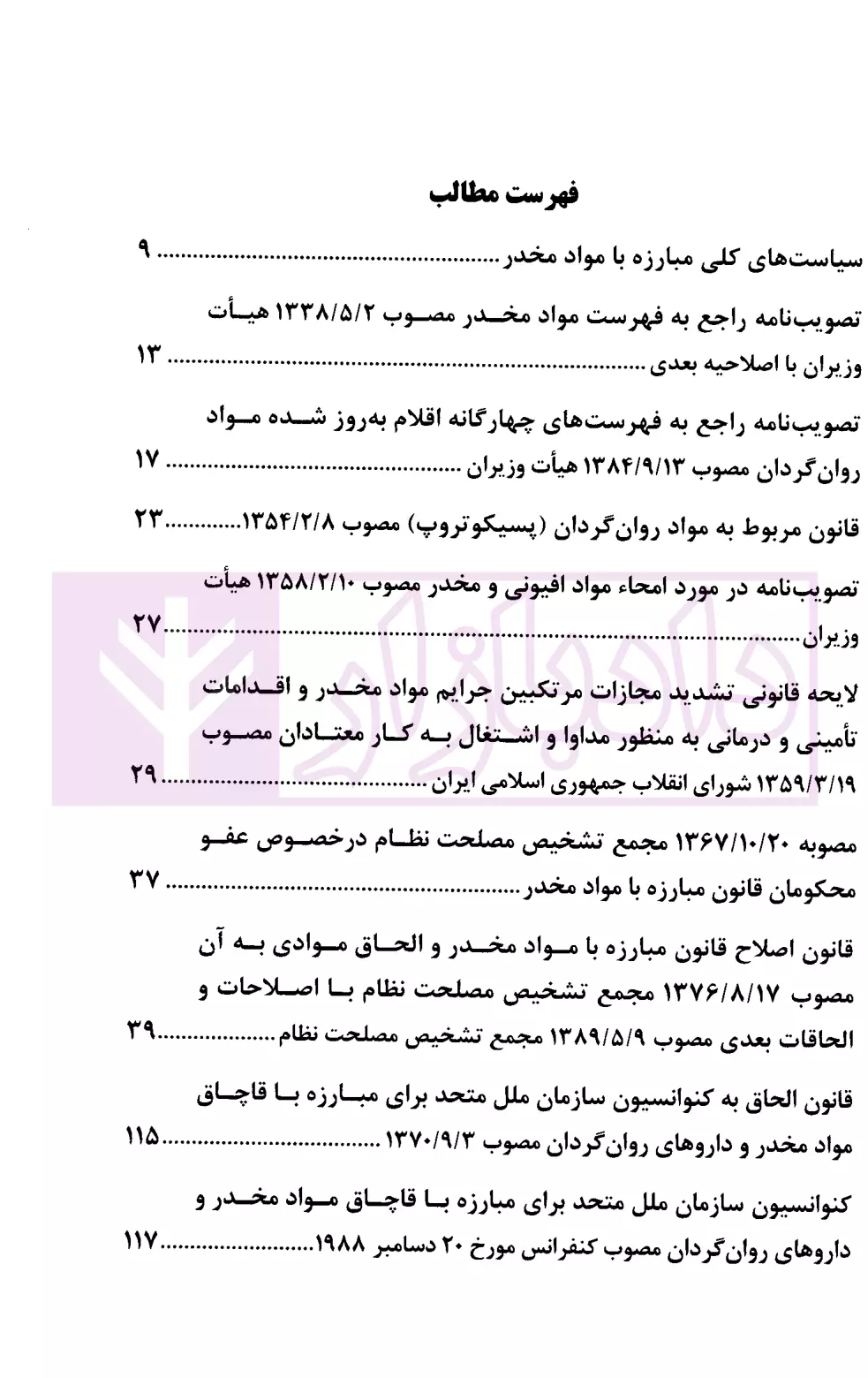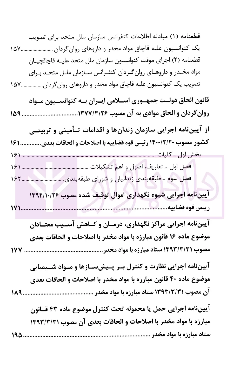 مشخصات و ویژگی کتاب مجموعه قوانین و مقررات مواد مخدر (رقعی) | رازانی