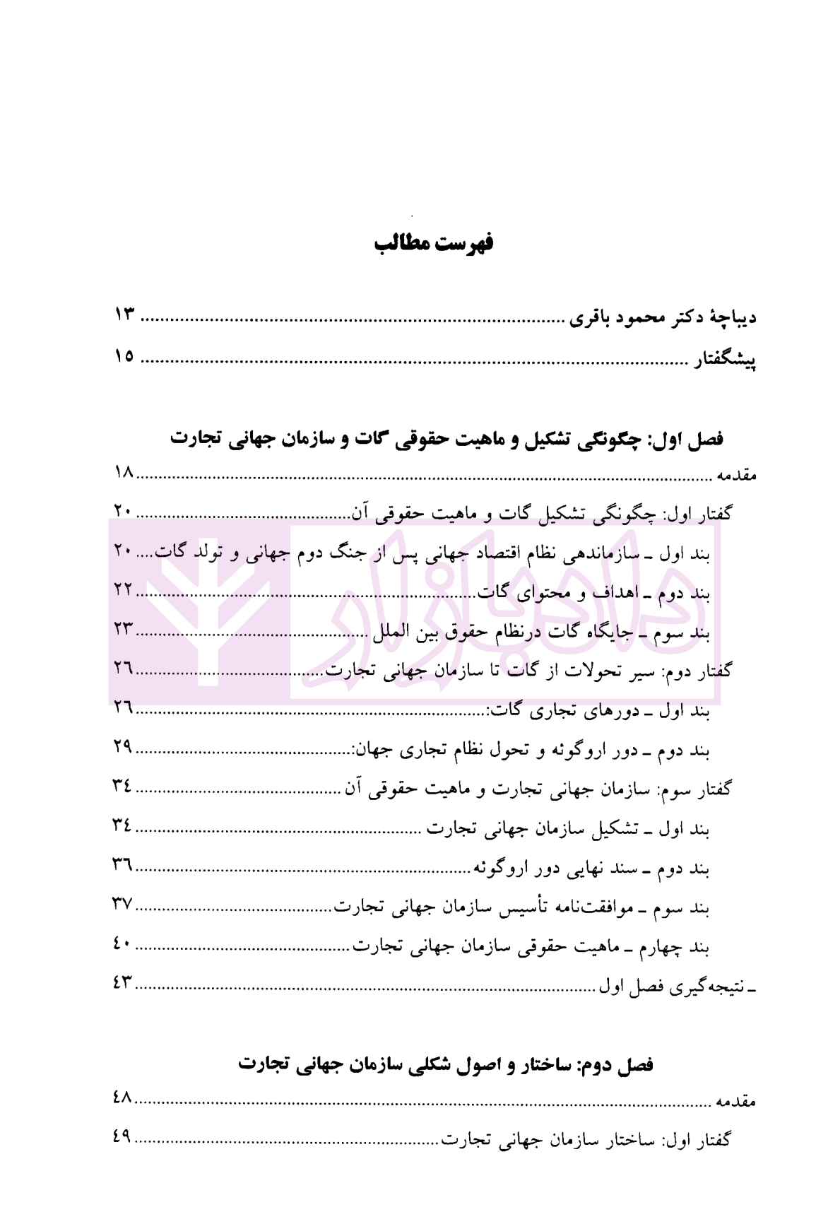 معرفی و فهرست کتاب نظام حقوقی سازمان جهانی تجارت | دکتر رضایی