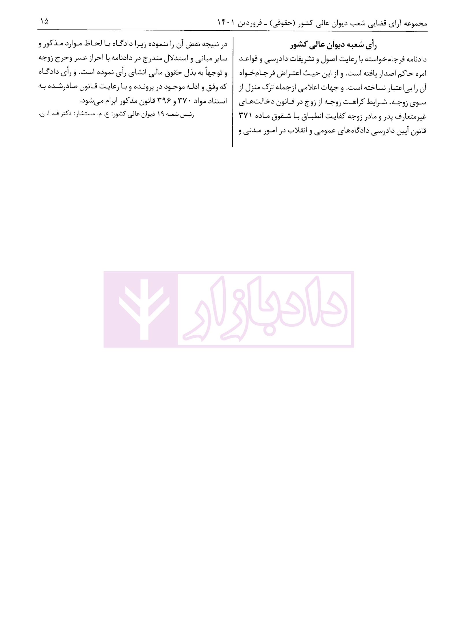 مجموعه آرای قضایی شعب دیوان عالی کشور (حقوقی) بهار 1401
