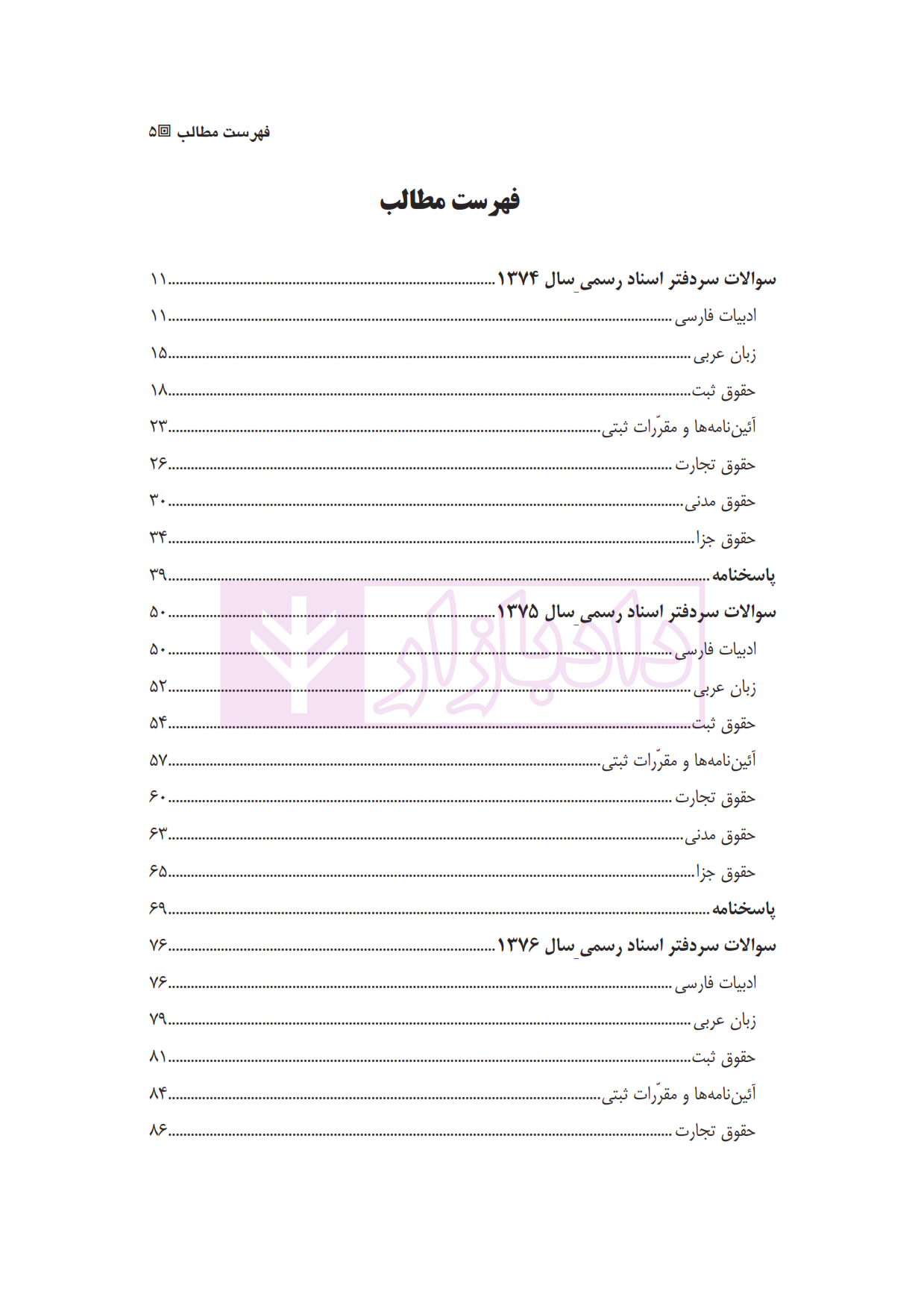 معرفی و فهرست کتاب مجموعه آزمون های انتخاب سردفتران اسناد رسمی | زیبائی و اردکانی