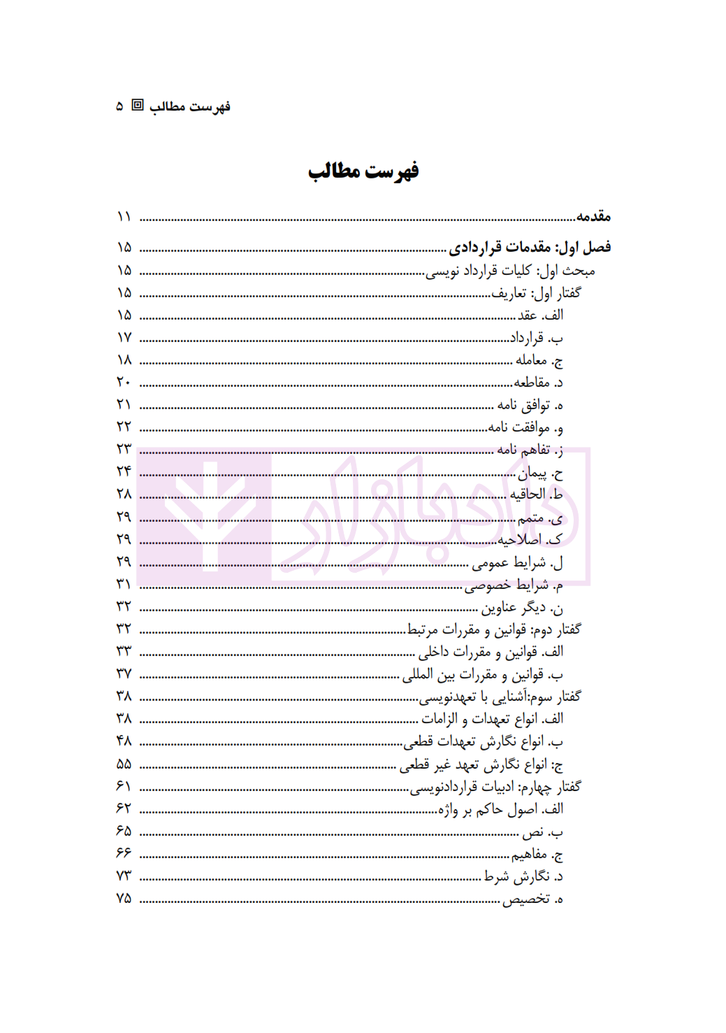 فهرست عناوین اصلی آموزش جامع قراردادنوسی