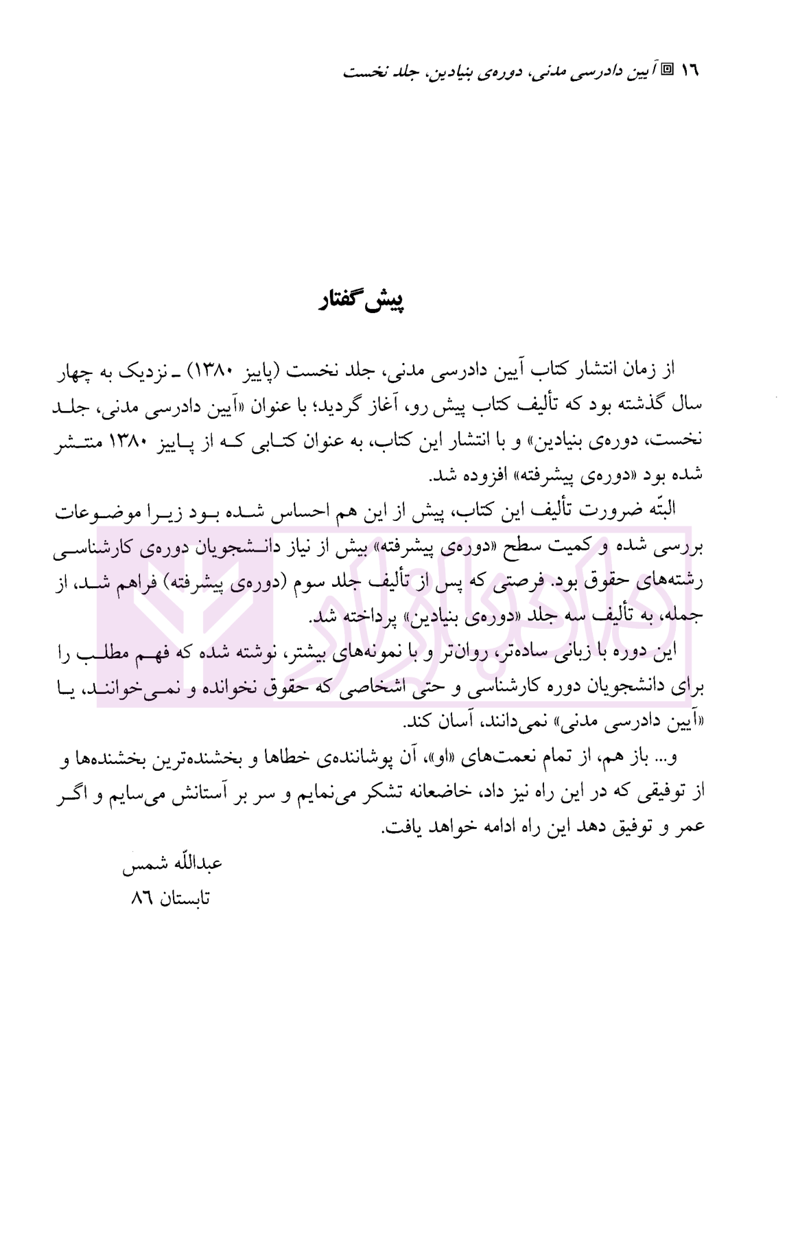معرفی و فهرست کتاب آیین دادرسی مدنی – دوره بنیادین (جلد اول) | دکتر شمس