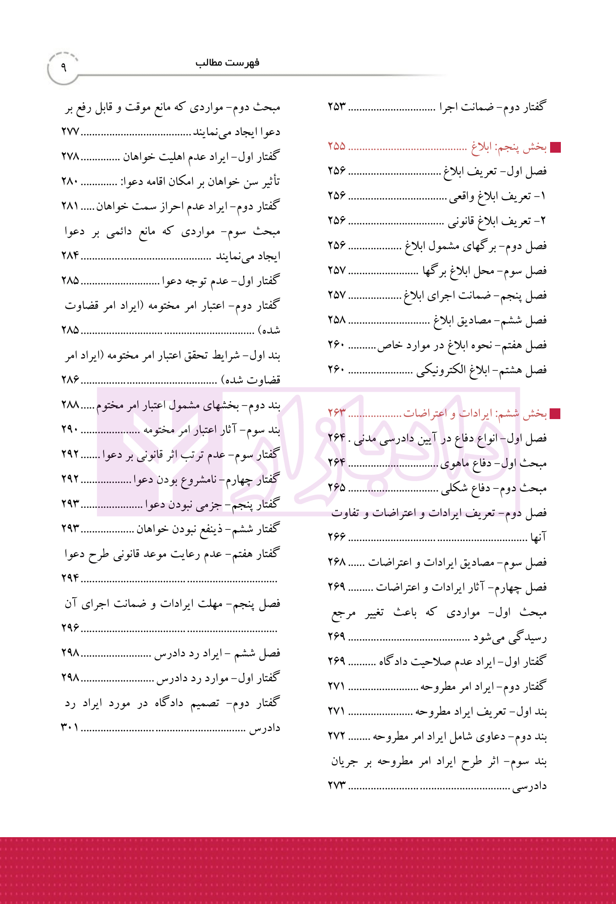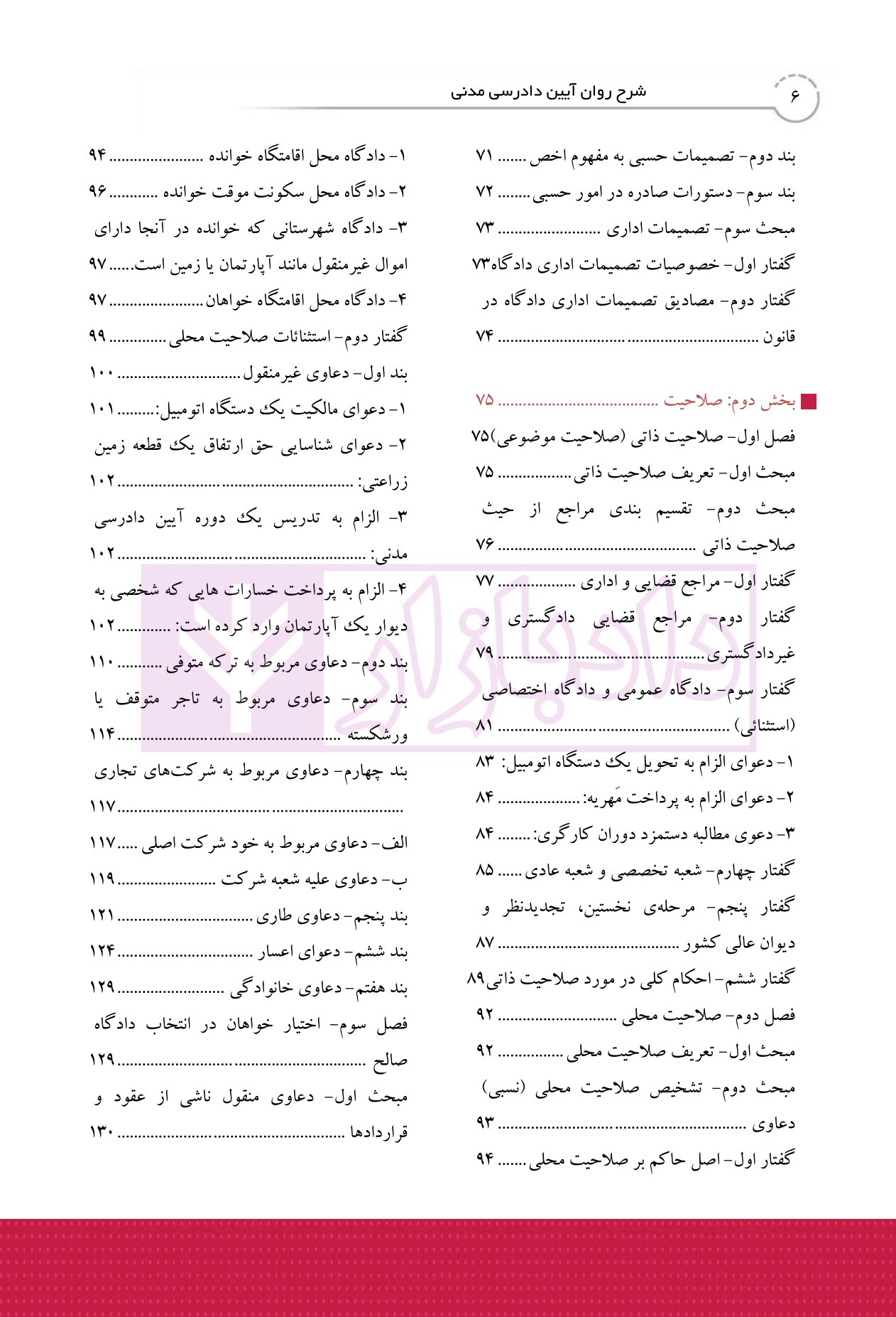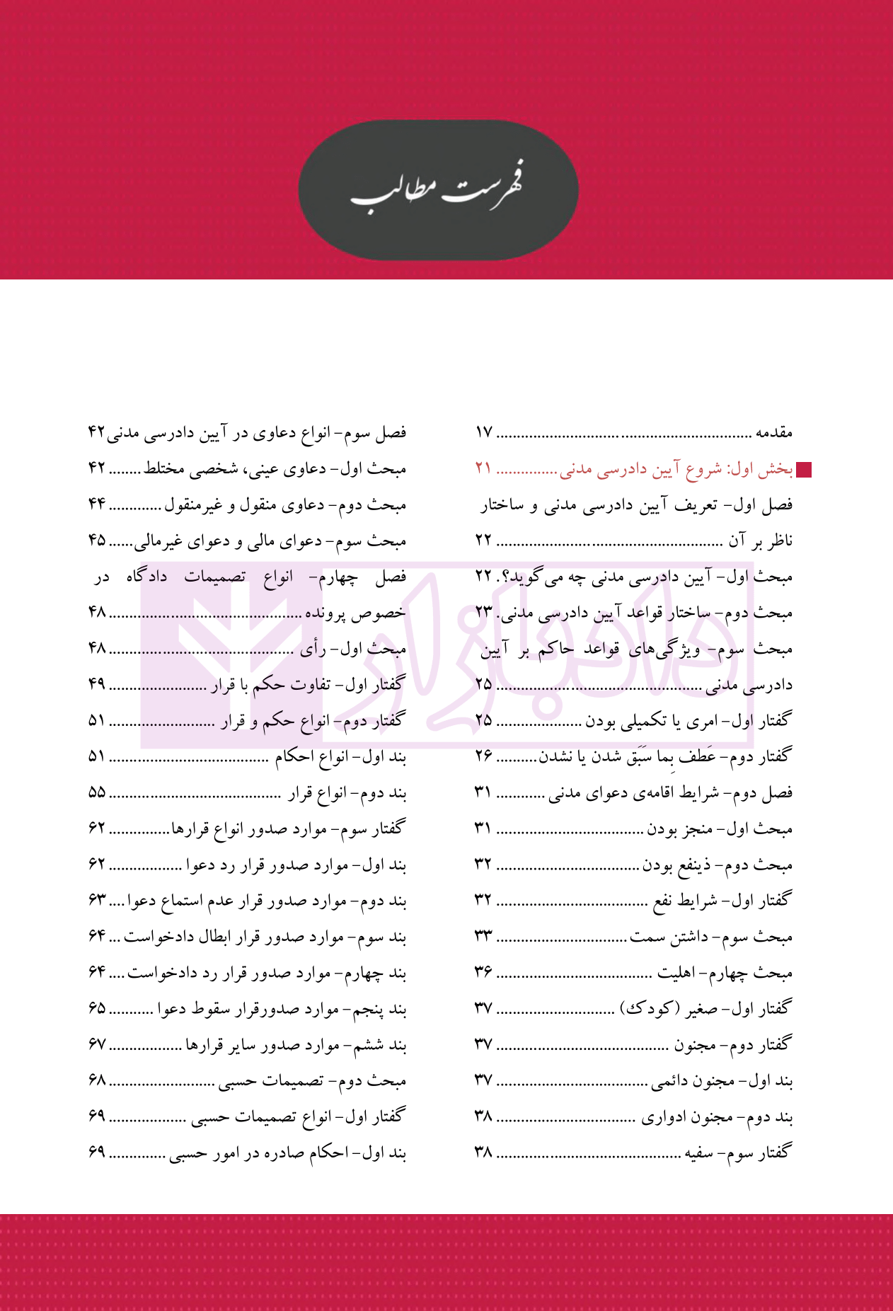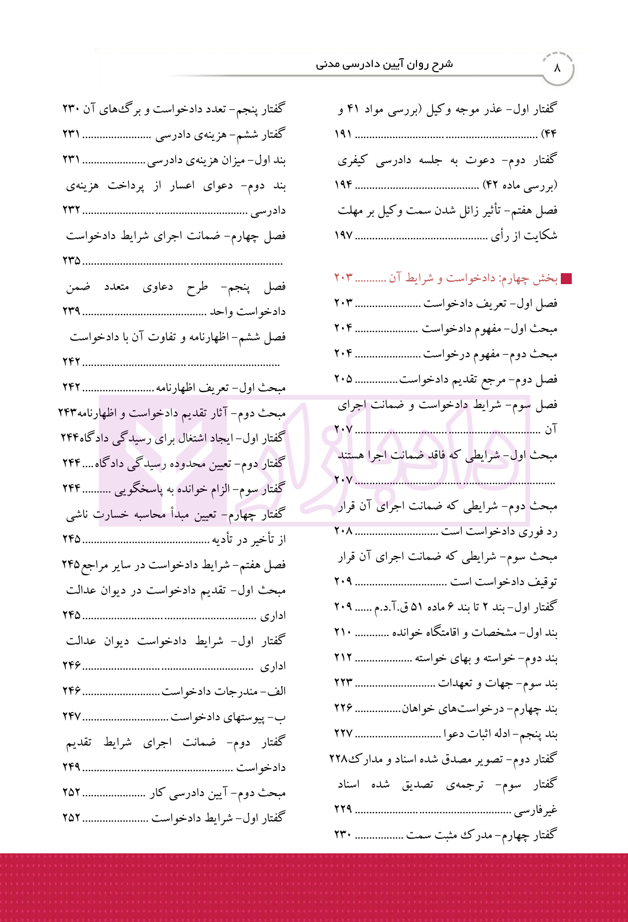 سرفصل های کتاب شرح روان آیین دادرسی مدنی