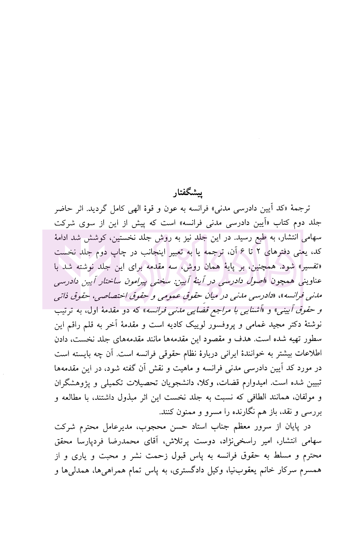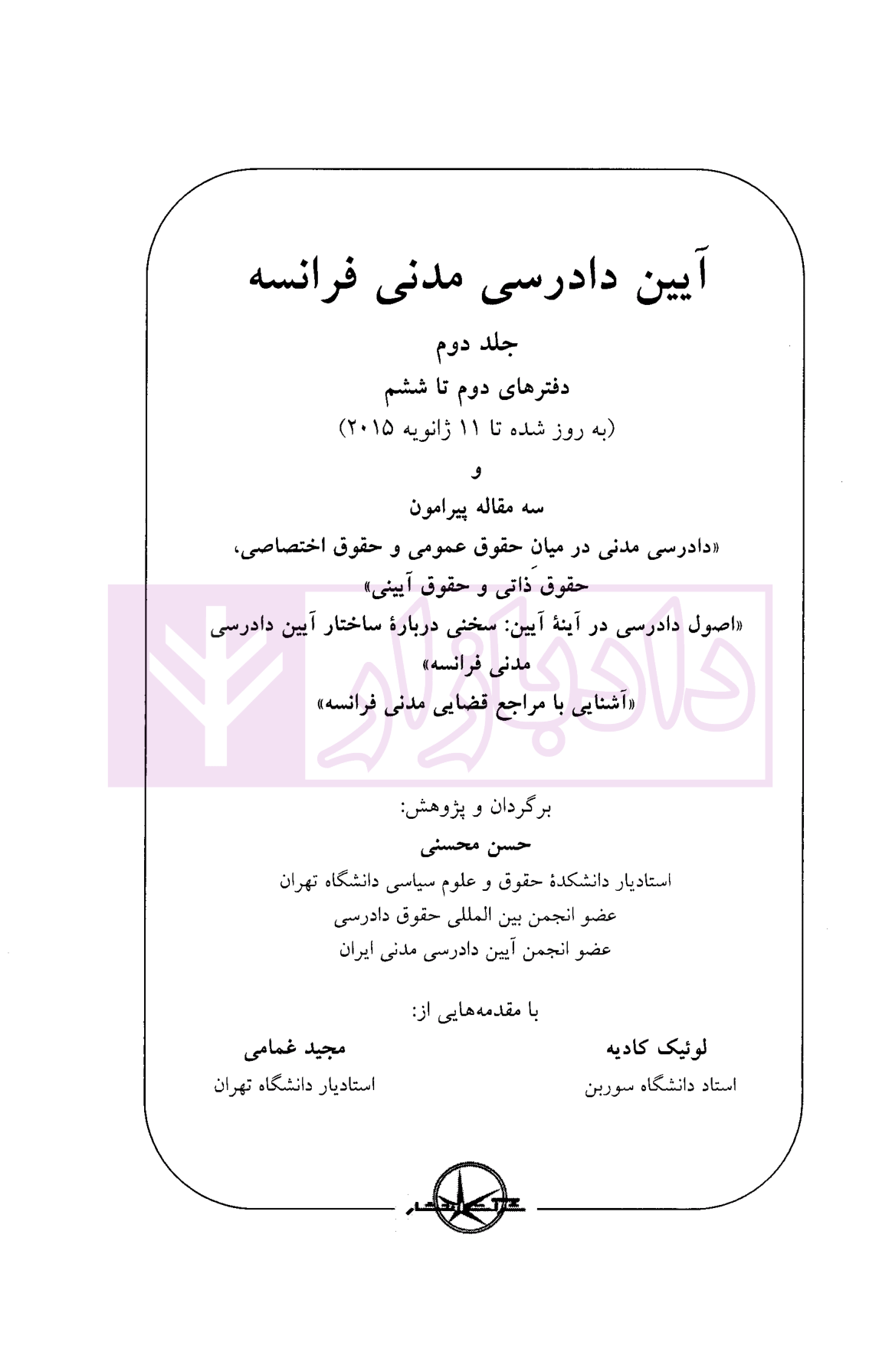 مشخصات و ویژگی کتاب آیین دادرسی مدنی فرانسه – جلد دوم | دکتر محسنی