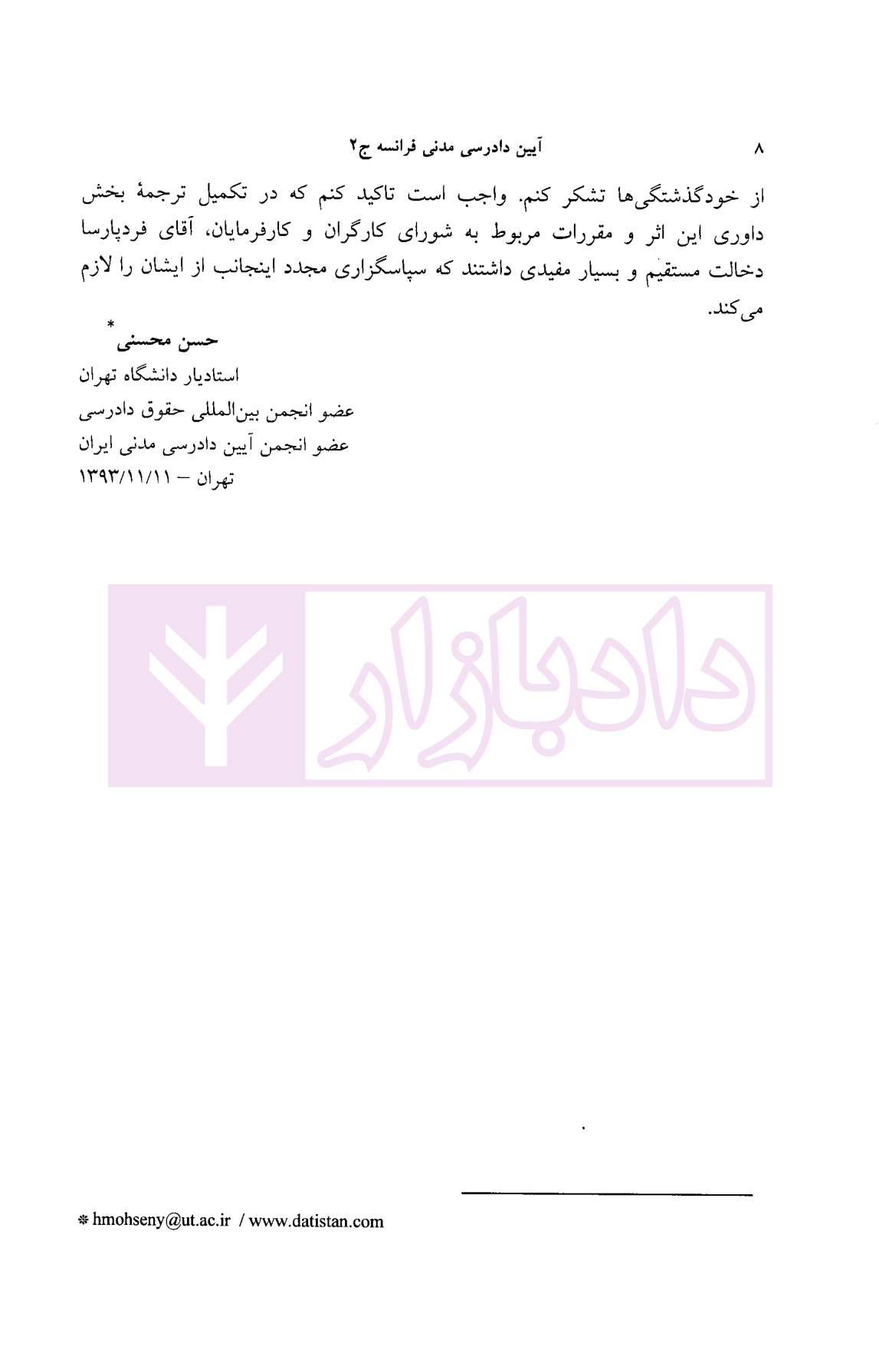 امتیاز و دیدگاه کاربران آیین دادرسی مدنی فرانسه - جلد دوم | دکتر محسنی