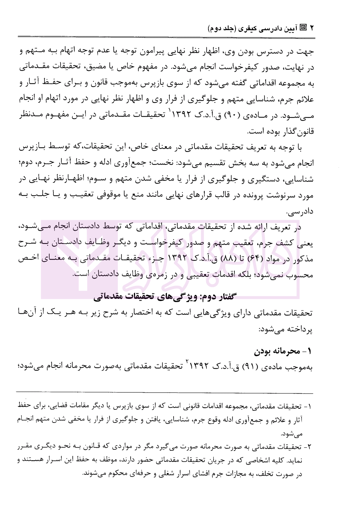 مشخصات و ویژگی کتاب آیین دادرسی کیفری – جلد دوم (تحقیقات مقدماتی و …) | دکتر مصدق