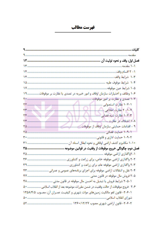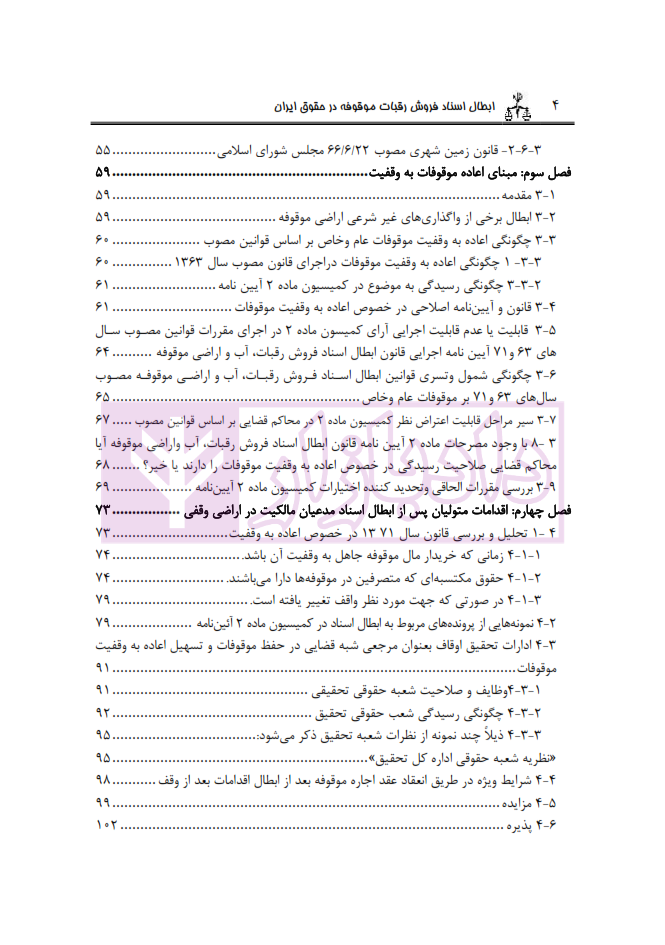 فهرست عناوین ابطال اسناد فروش رقبات موقوفه در حقوق ایران