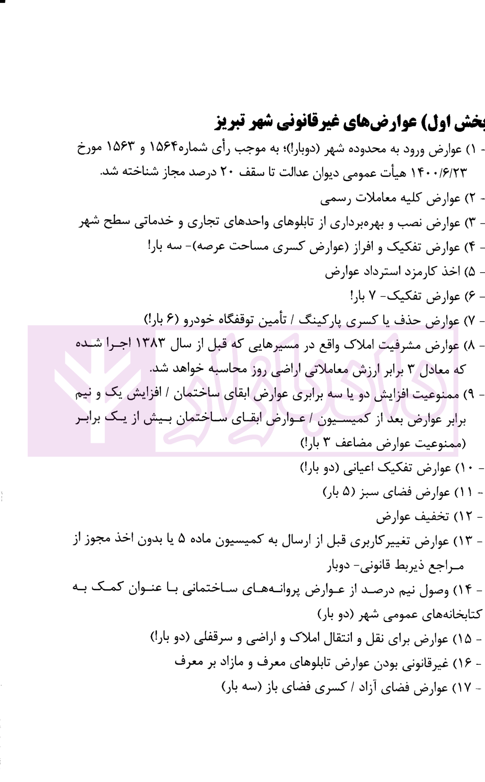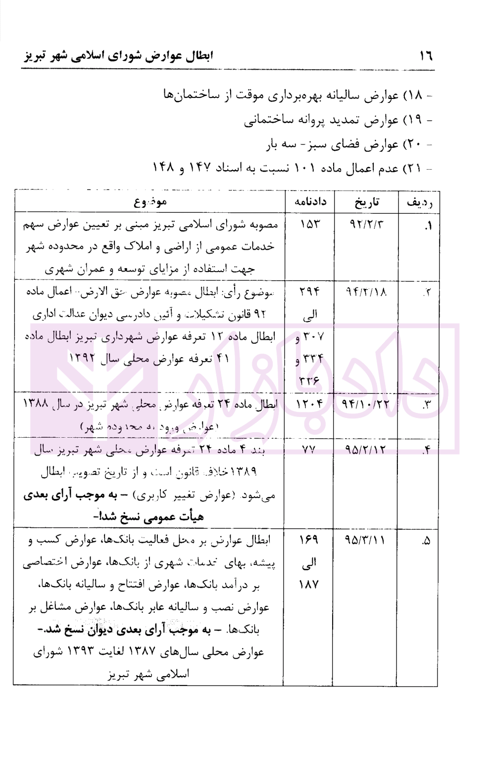 امتیاز و دیدگاه کاربران ابطال عوارض شورای اسلامی شهر تبریز در آراء هیات عمومی دیوان عدالت اداری | محمدی