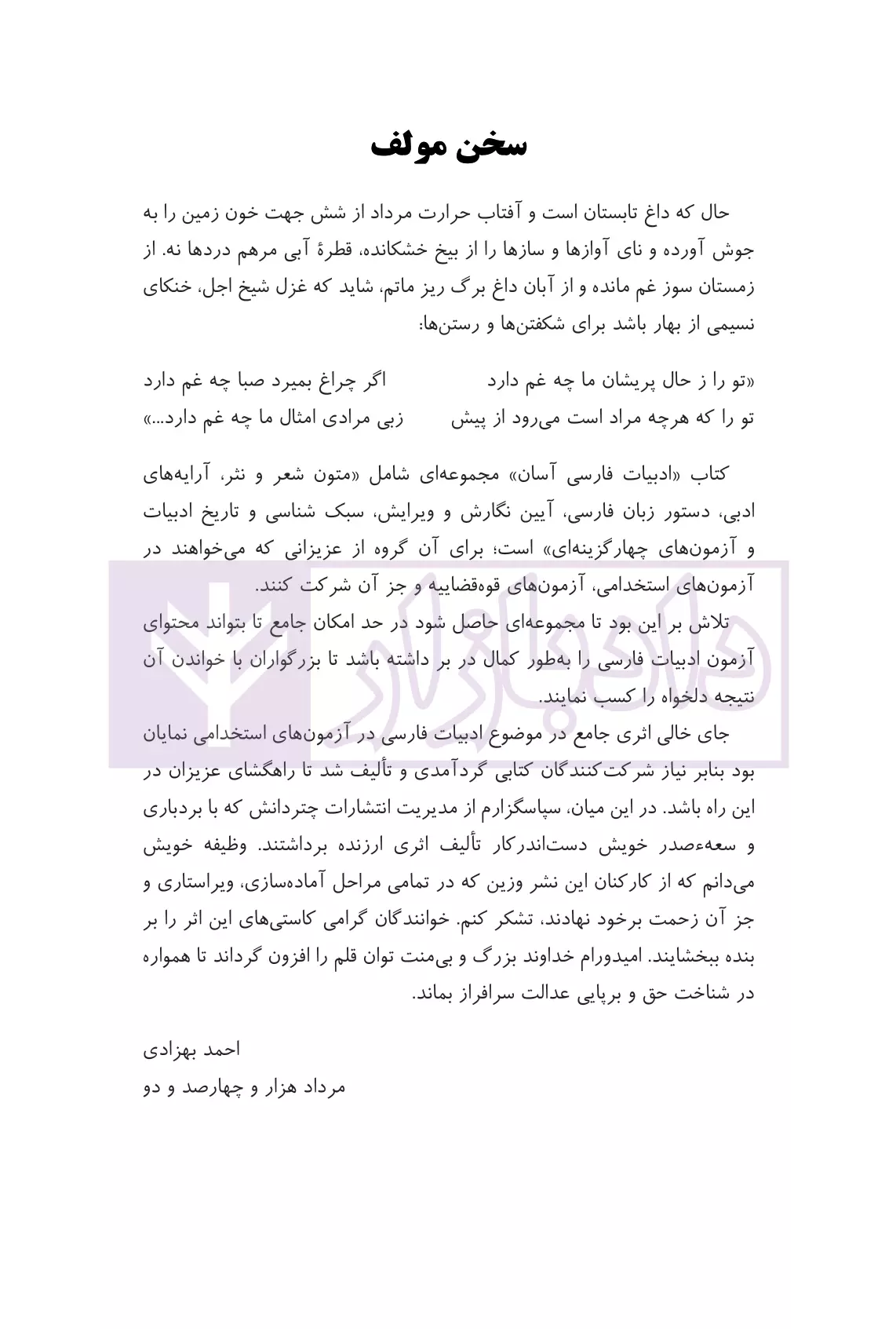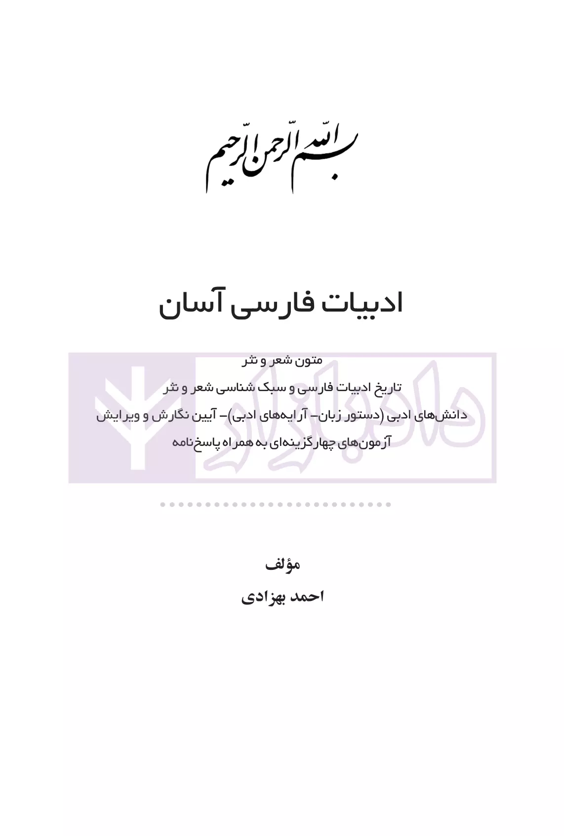 مشخصات و ویژگی کتاب ادبیات فارسی آسان | بهزادی