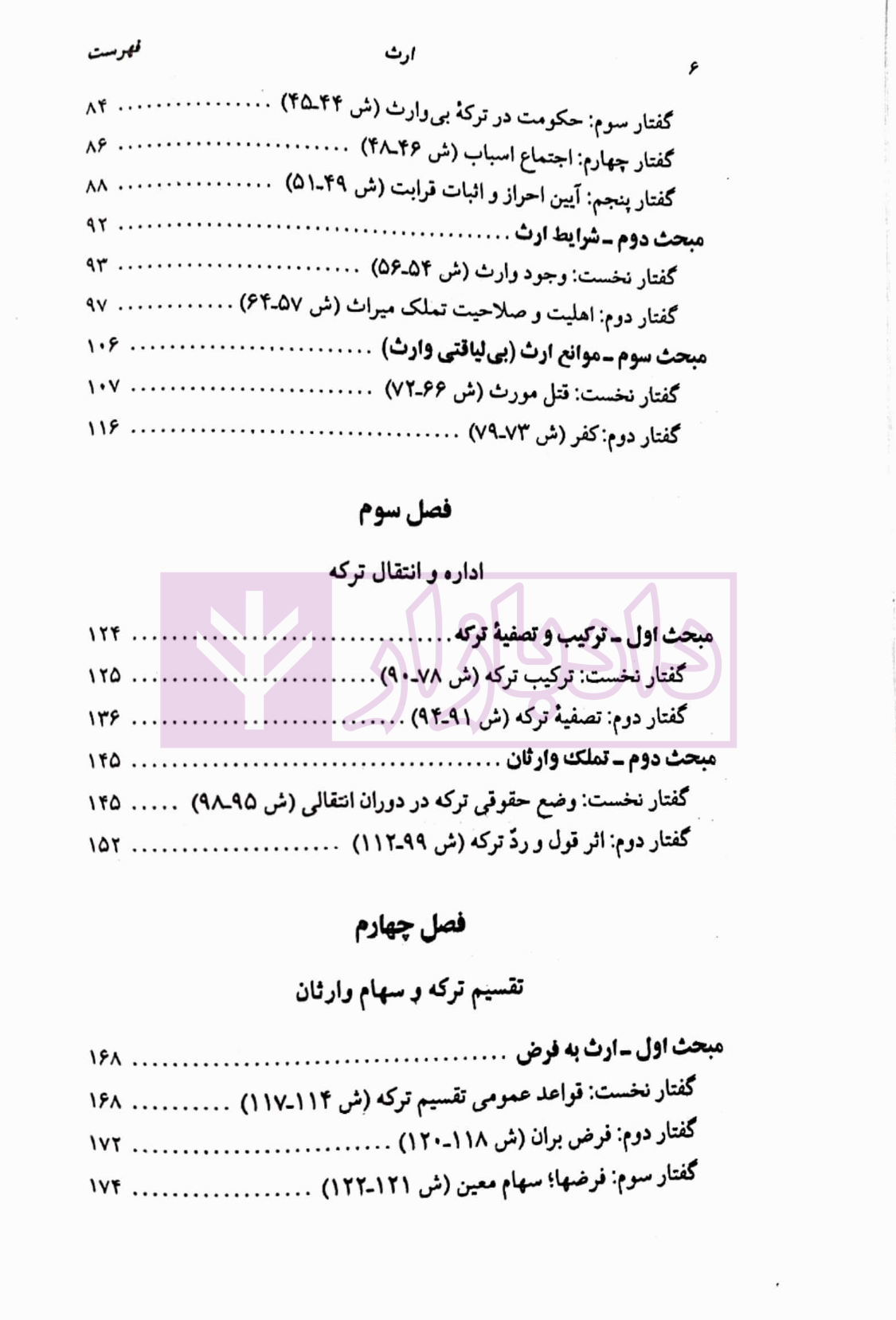فصل چهارم: تقسيم تركه و سهام وارثان