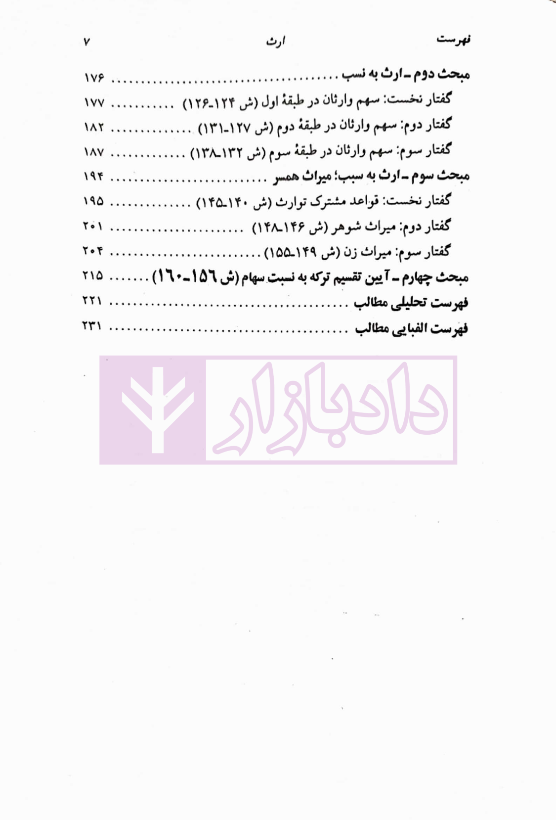 کتاب به صورت روان و دقیق با استناد به قوانین حقوق مدنی و منابع معتبر حقوقی و فقهی مبحث درسی ارث را بازگشایی میکند. علاوه بر نگاه علمی و حقوقی به مقوله ارث در این کتاب، جوانب کاربردی و رویه قضایی ارث نیز دیده شده است.