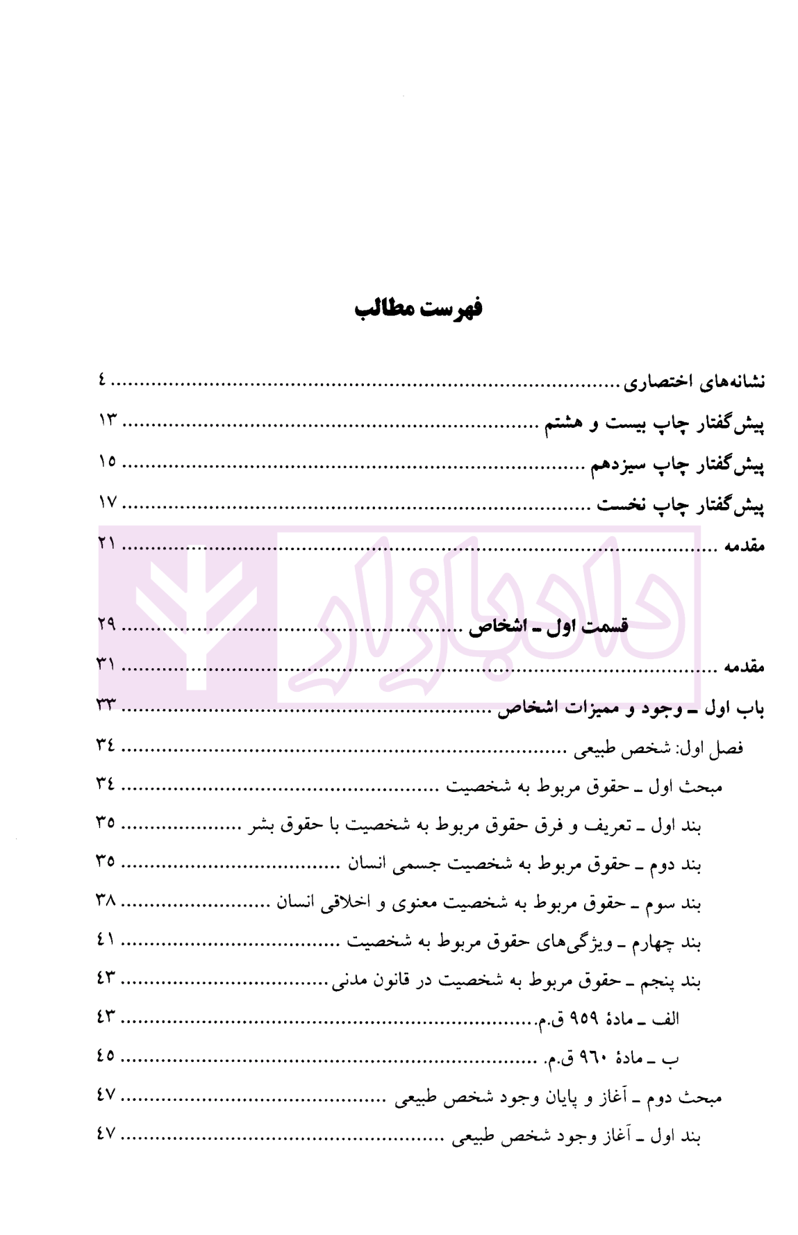 معرفی و فهرست کتاب دوره مقدماتی حقوق مدنی جلد اول (اشخاص و اموال) | دکتر صفایی