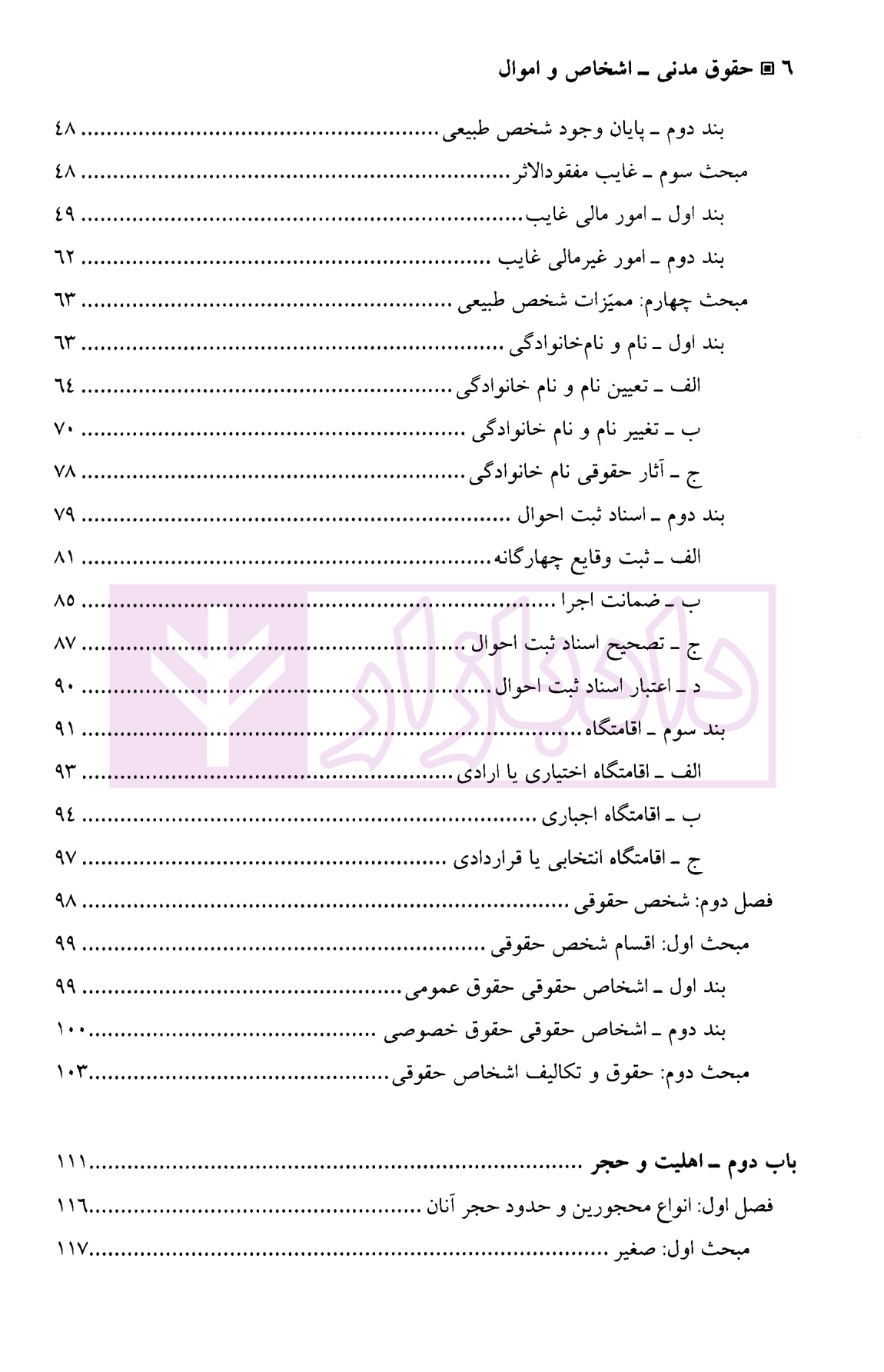 عناوین کتاب اشخاص و اموال دکتر صفایی