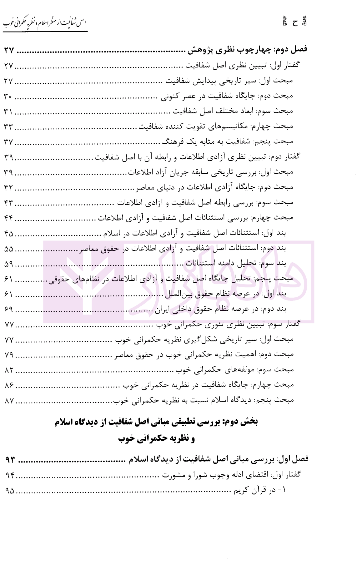 مشخصات و ویژگی کتاب اصل شفافیت از منظر اسلام و نظریه حکمرانی خوب | دکتر طاهری