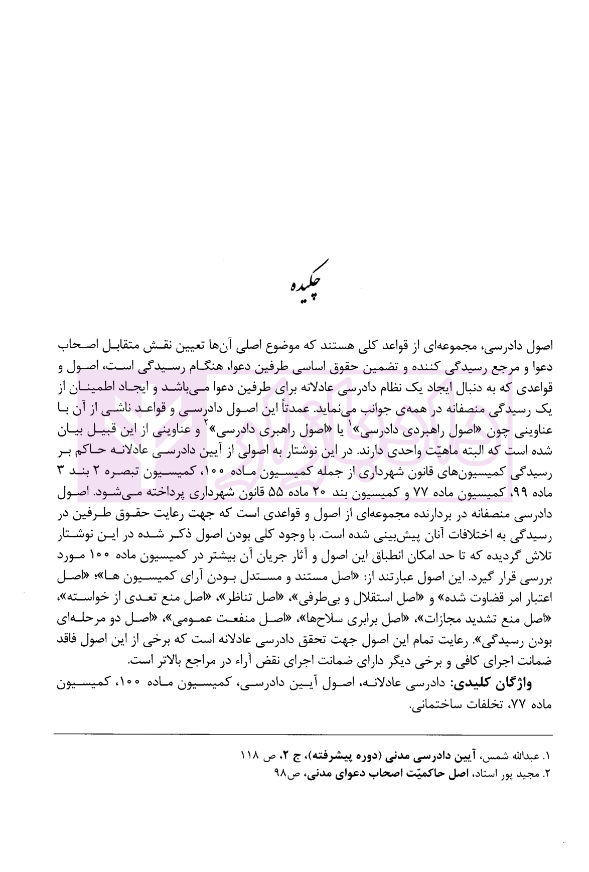 امتیاز و دیدگاه کاربران اصول دادرسی عادلانه حاکم بر رسیدگی کمیسیون های قانون شهرداری با تکیه بر کمیسیون ماده 100 و 77 شهرداری | محمدی