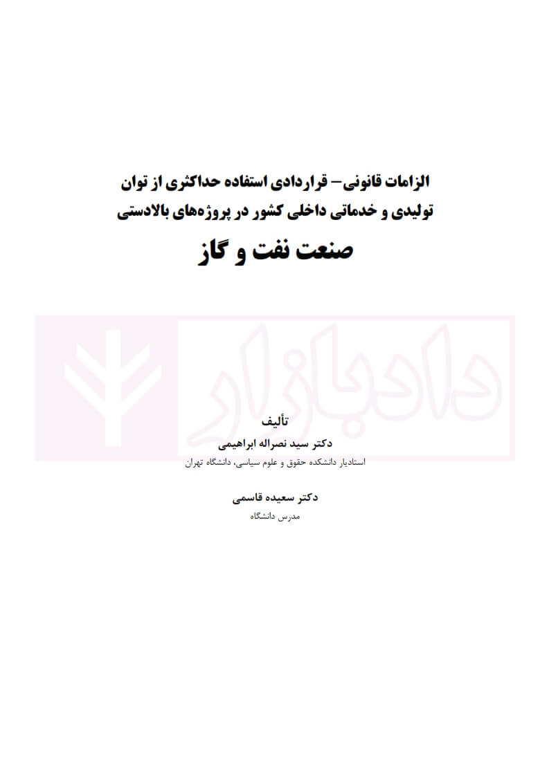 مشخصات و ویژگی کتاب الزامات قانونی- قراردادی استفاده حداکثری از توان تولیدی و خدماتی در پروژههای بخش بالادستی صنعت نفت و گاز