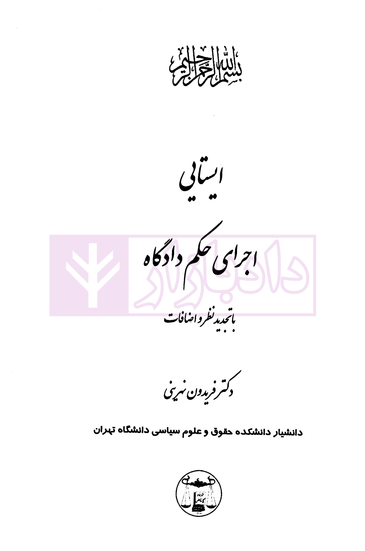 مشخصات و ویژگی کتاب ایستایی اجرای حکم دادگاه | دکتر نهرینی