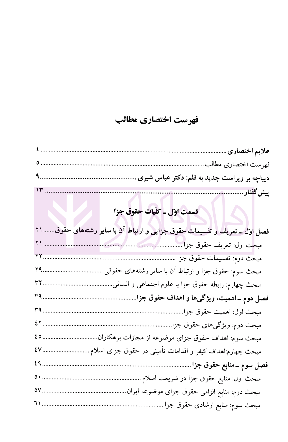 کتاب در چاپ بیست پنجم توسط دکتر عباس شیری با توجه به قوانین و مقررات جدید بویژه قانون کاهش مجازات حبس تعزیری مصوب سال 99 بروزرسانی شده است