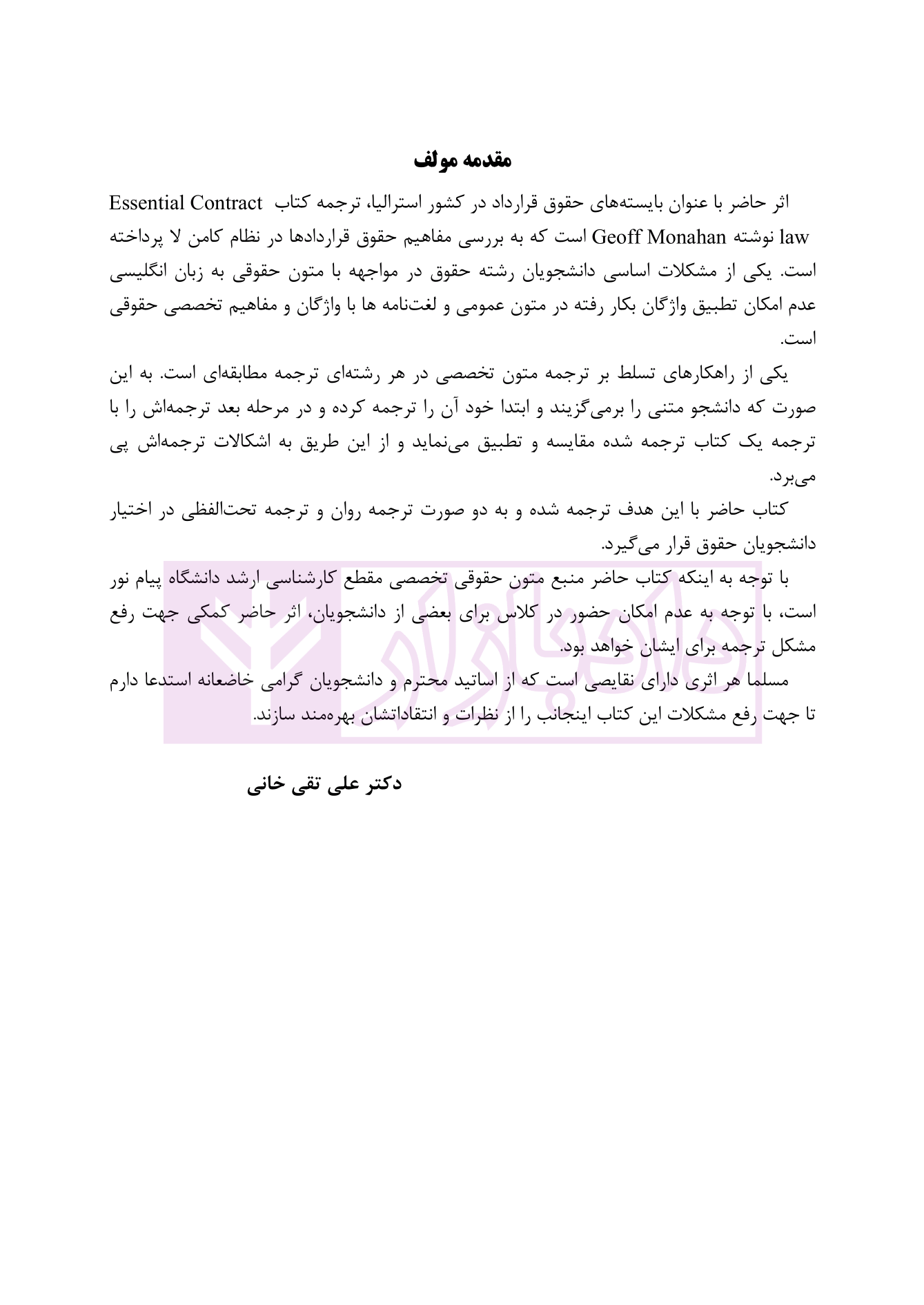 مشخصات و ویژگی کتاب بایسته های حقوق قرارداد در حقوق کشور استرالیا