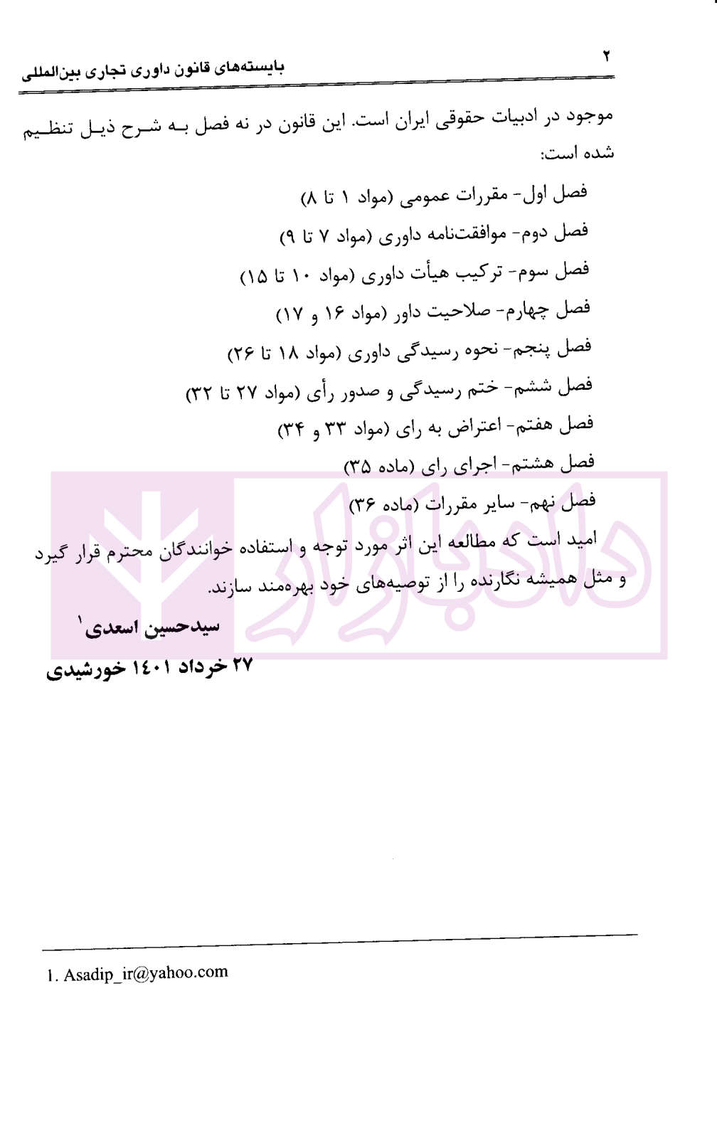 معرفی و فهرست کتاب بایسته های قانون داوری تجاری بین المللی | اسعدی