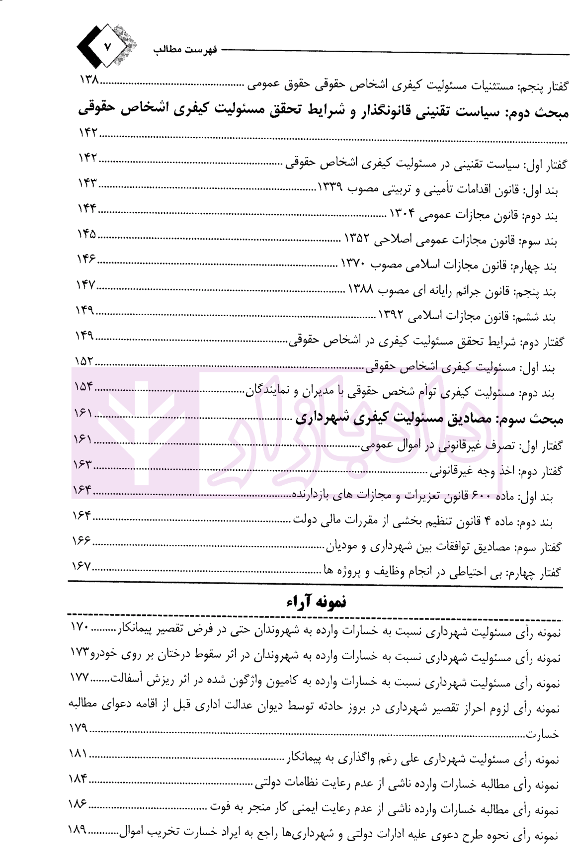 معرفی و فهرست کتاب بررسی مسئولیت مدنی و کیفری شهرداری ها | باقری سجیرانی