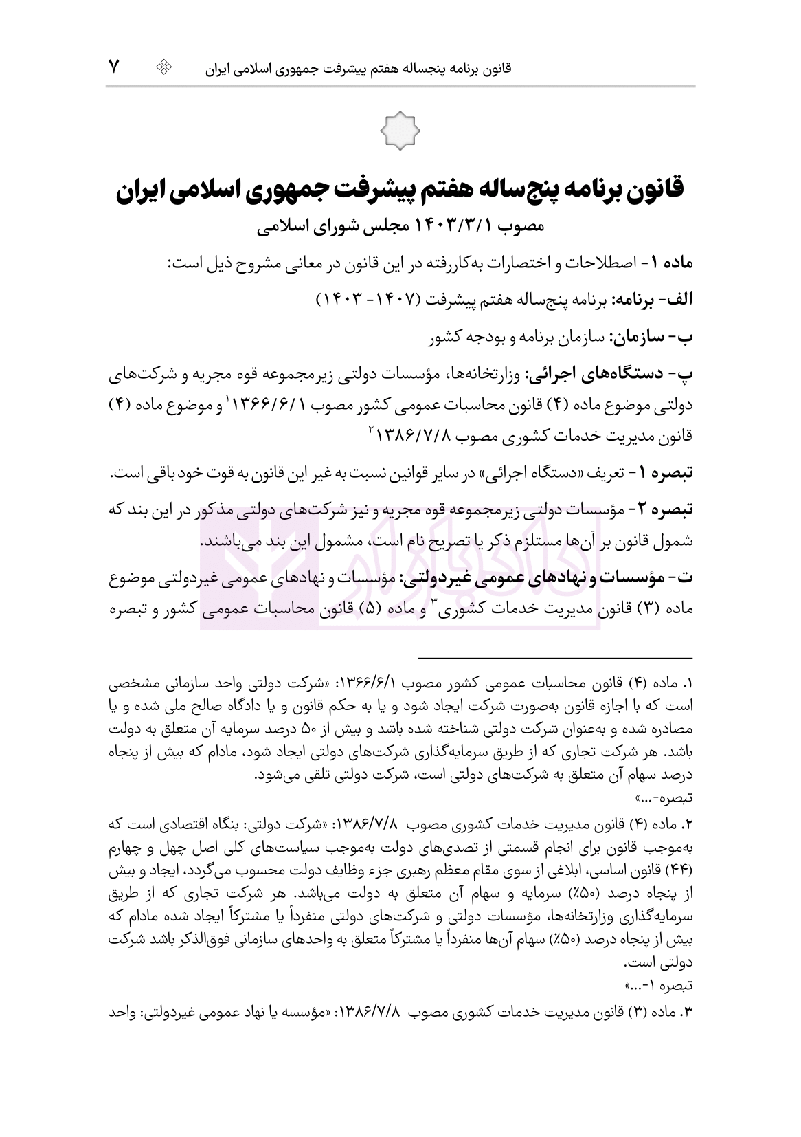 • شامل قانون برنامه هفتم پیشرفت جمهوری اسلامی ایران با اصلاح مورخ 1403/7/1
