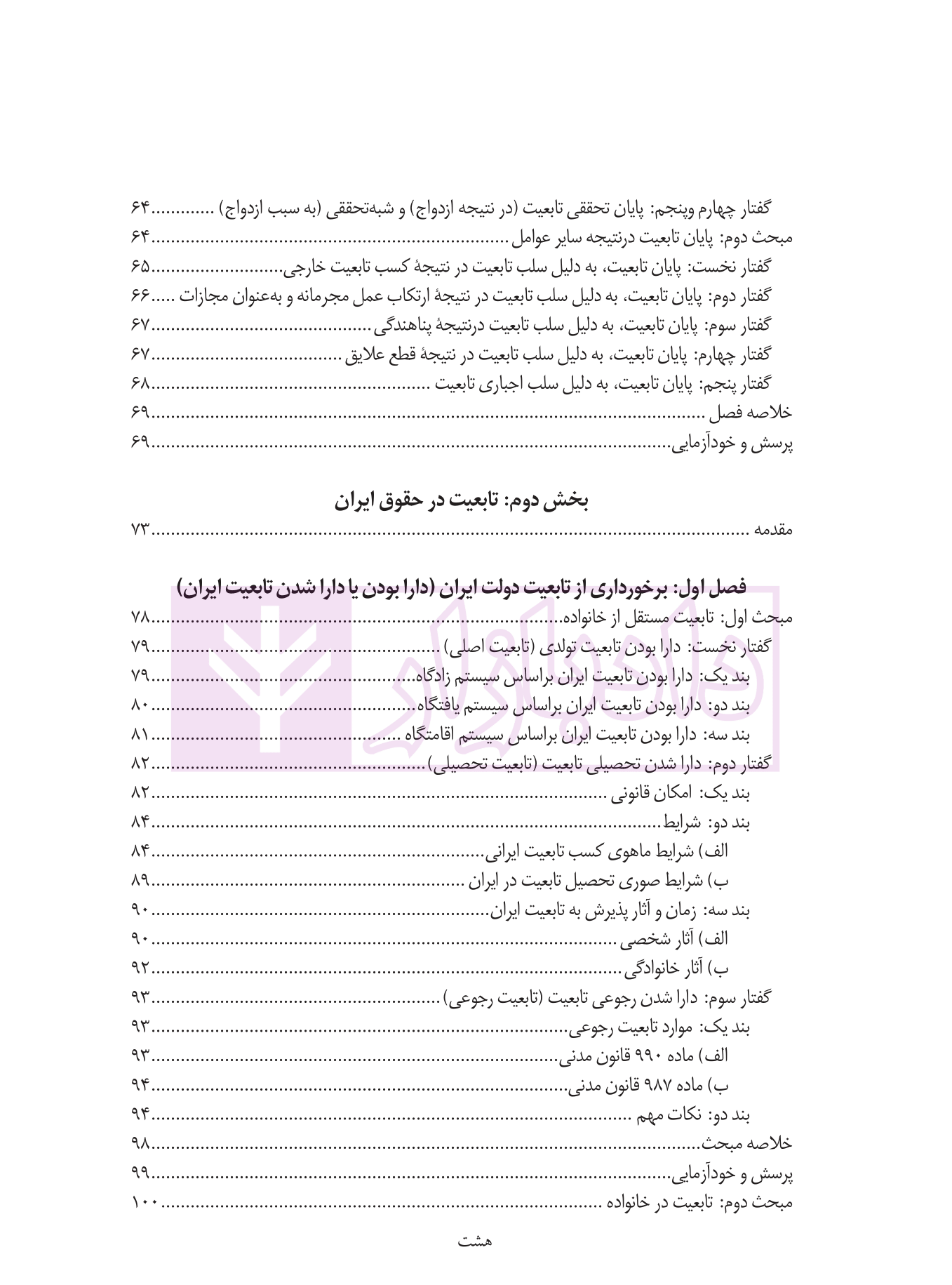 مشخصات و ویژگی کتاب تابعیت اعضای خانواده در حقوق ایران | دانش پژوه