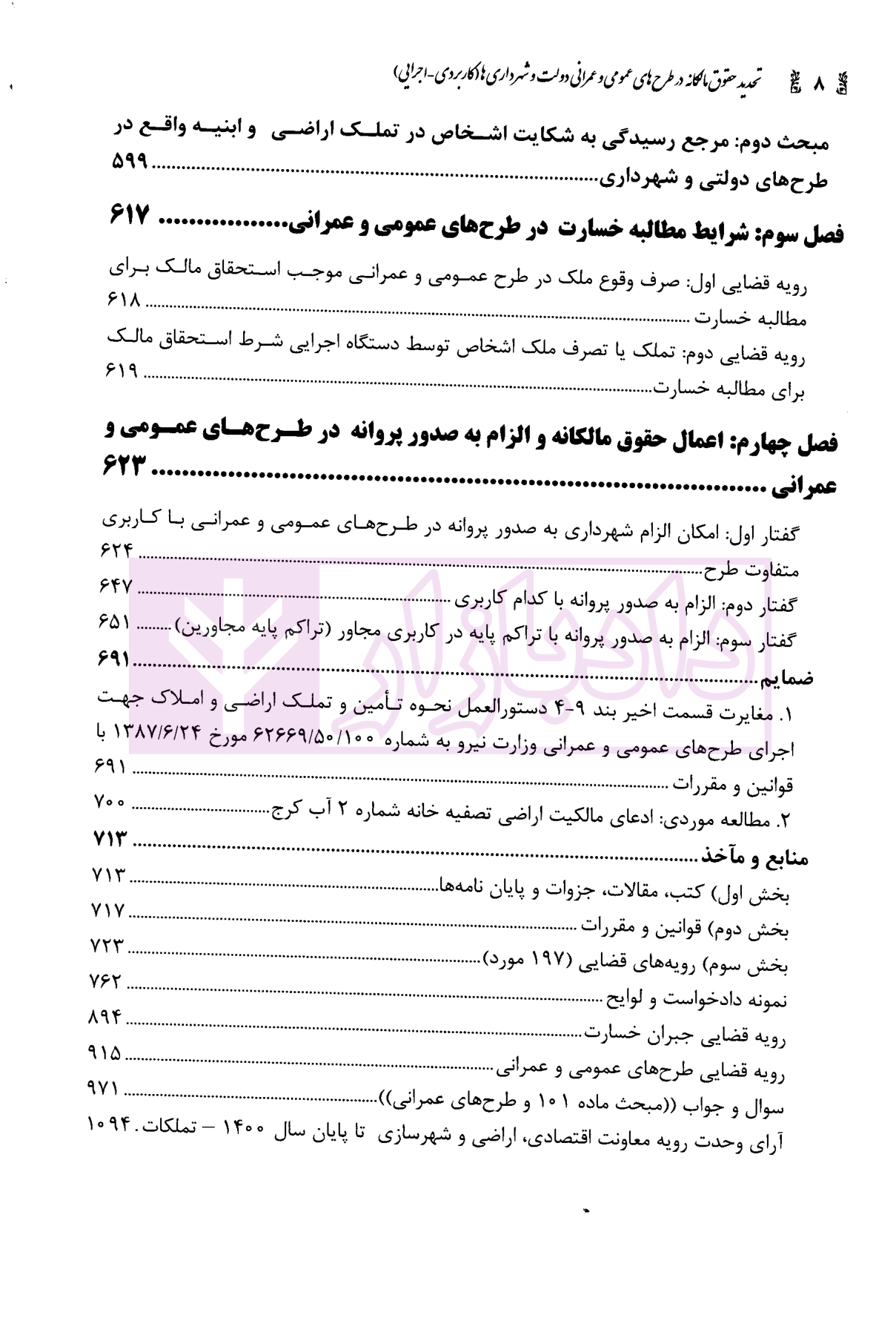 مشخصات و ویژگی کتاب تحدید حقوق مالکانه در طرح های عمومی و عمرانی | محمدی