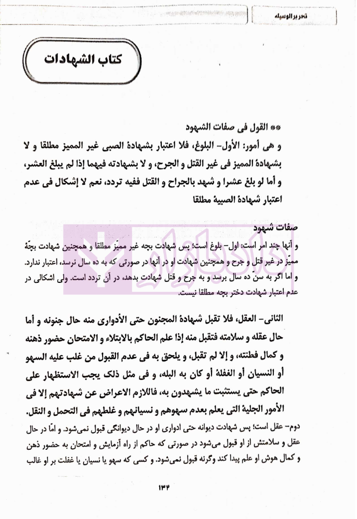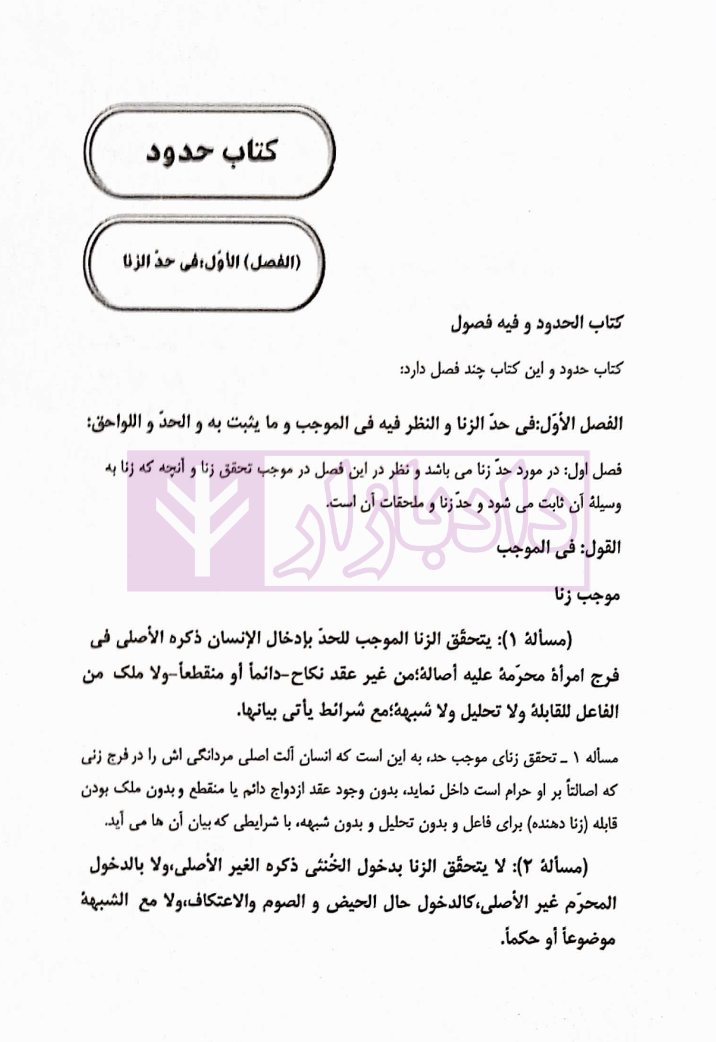 - متن عربی و ترجمه روان باب های حدود، شهادات و وکالت (منابع آزمون وکالت کانون وکلای دادگستری)