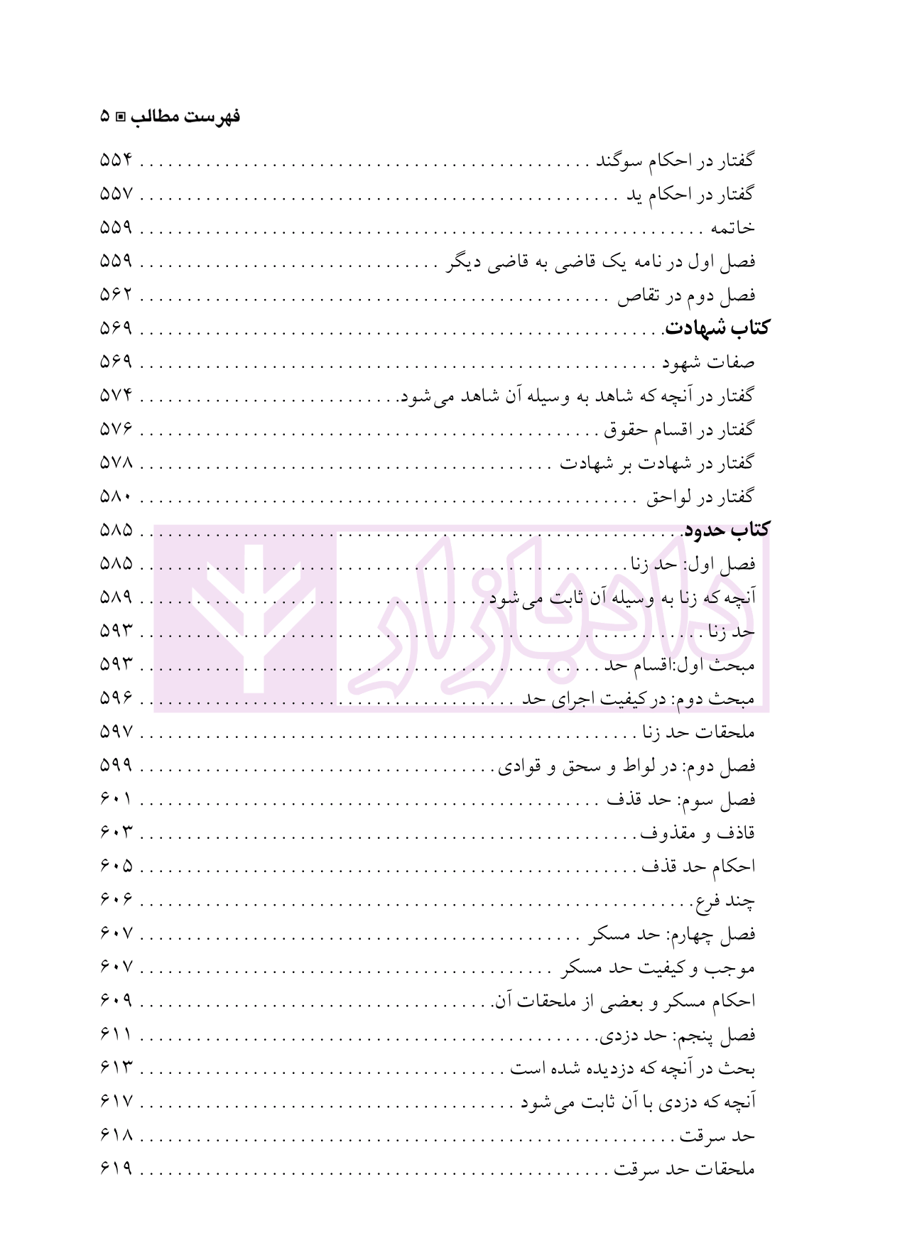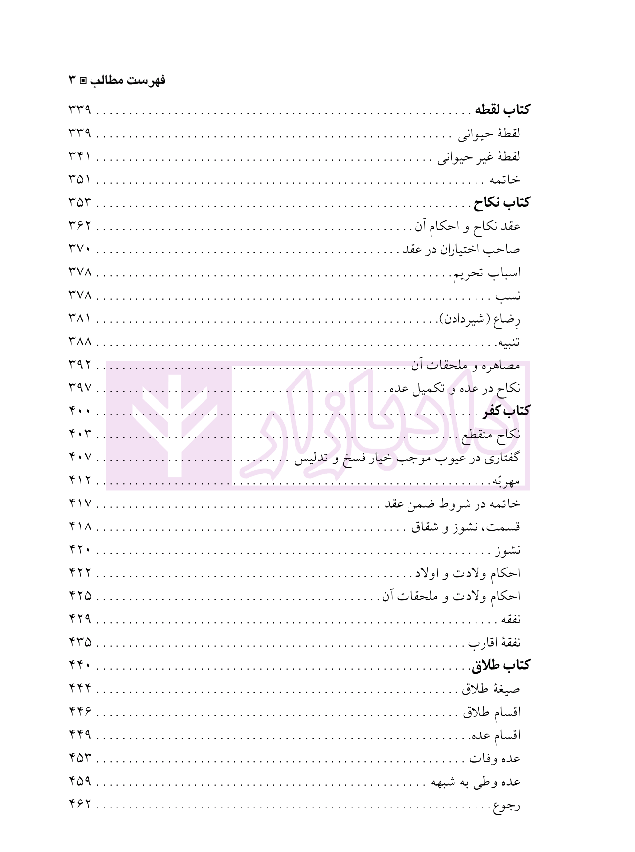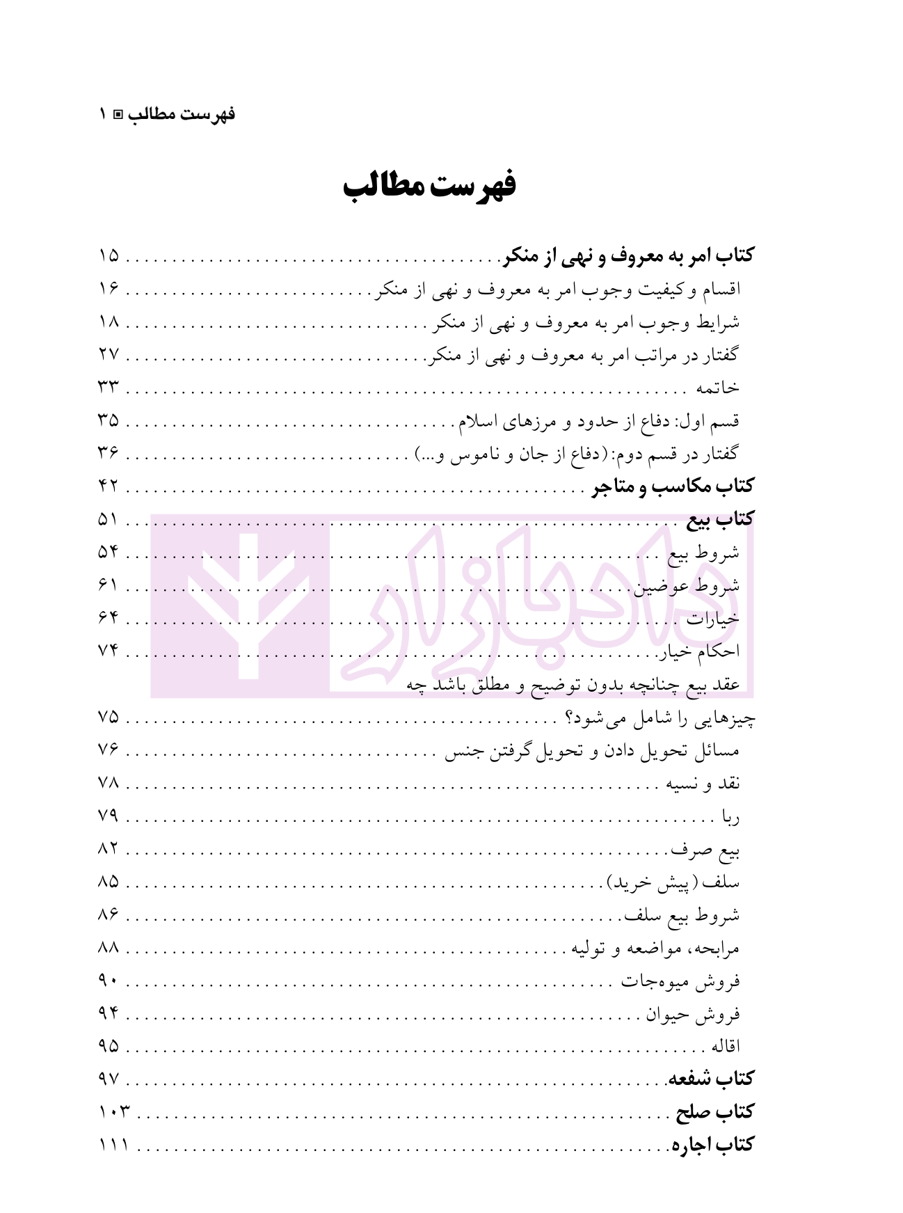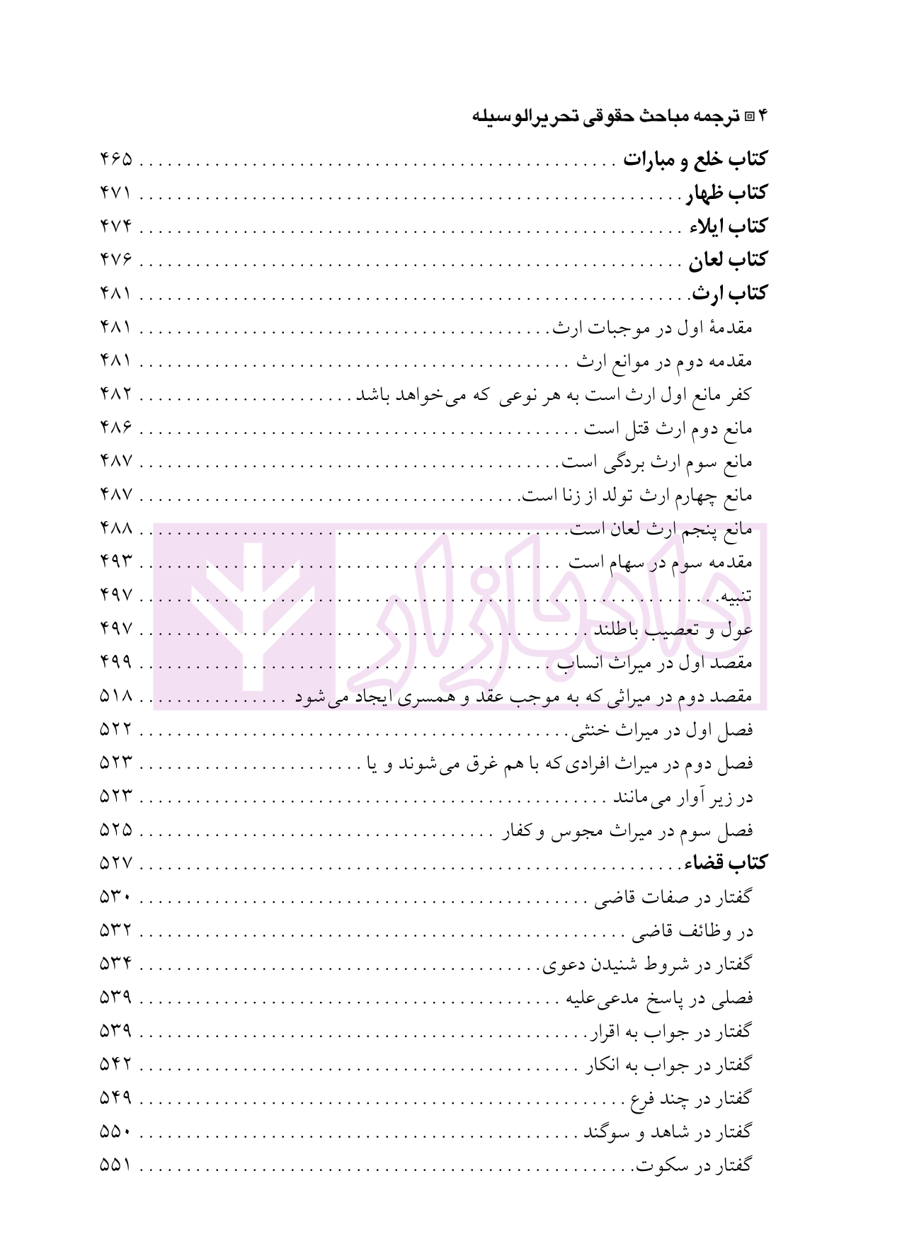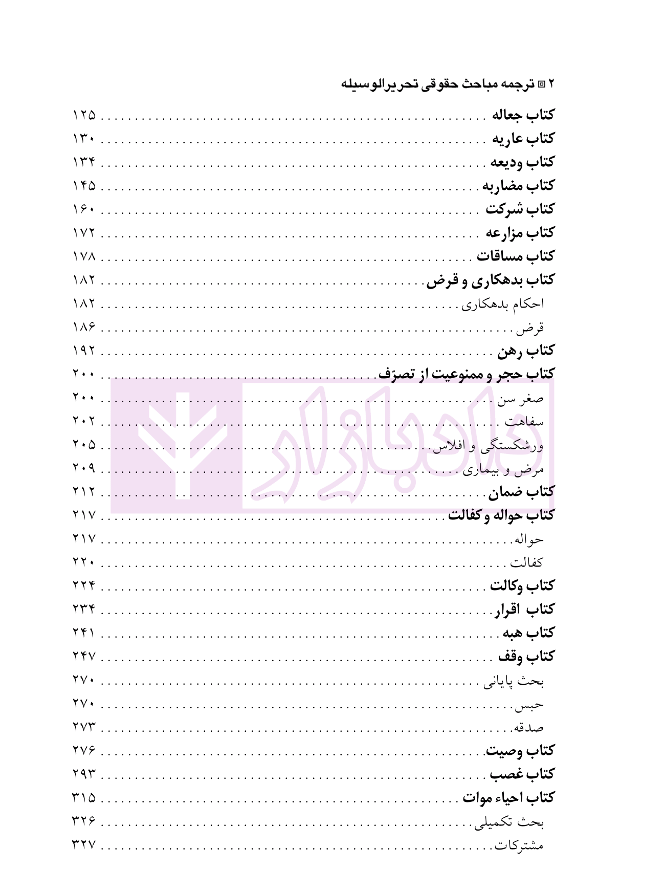 فهرست عناوین ترجمه مباحث حقوقی تحریرالوسیله آیت الله موسوی بجنوردی