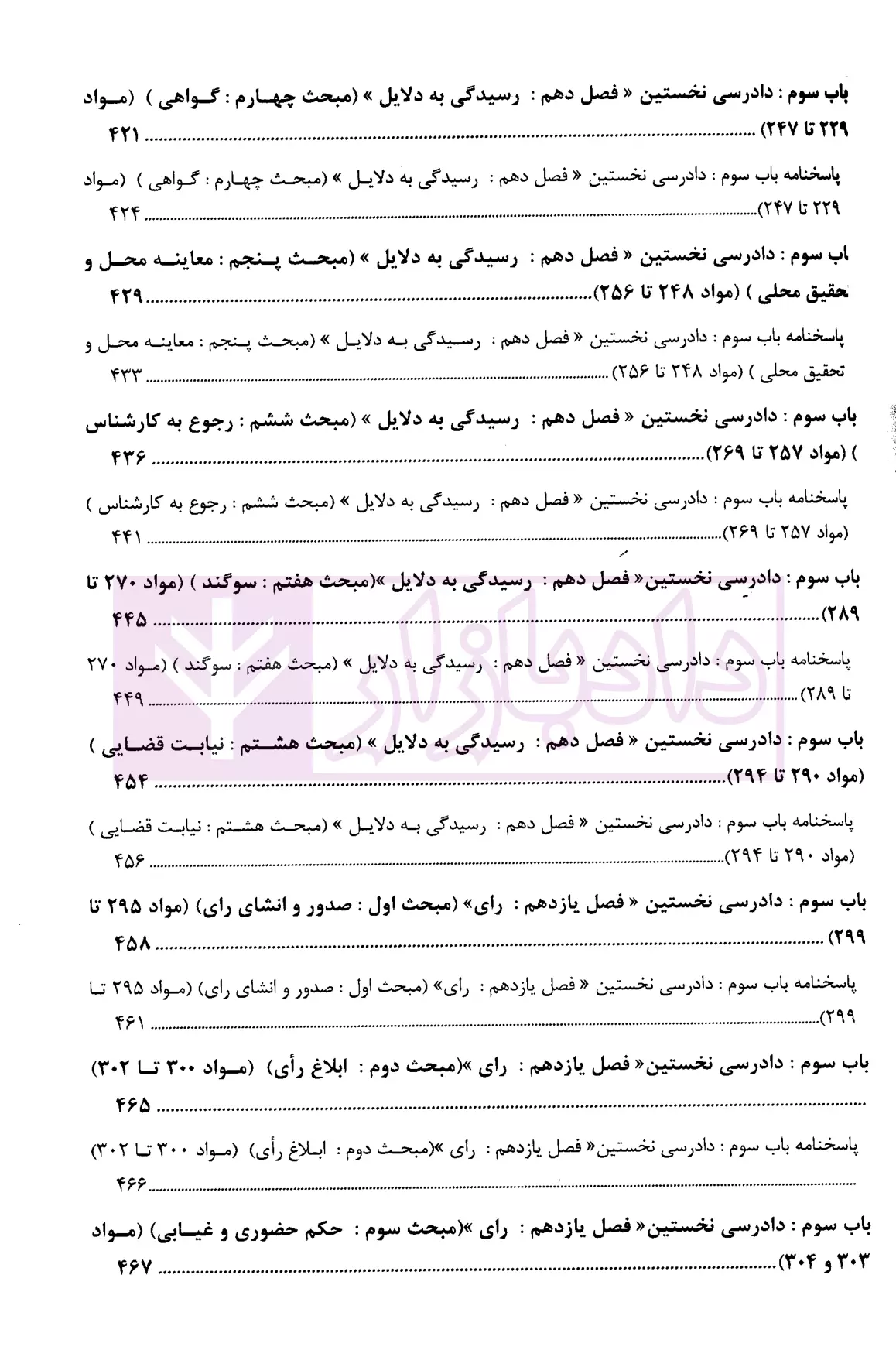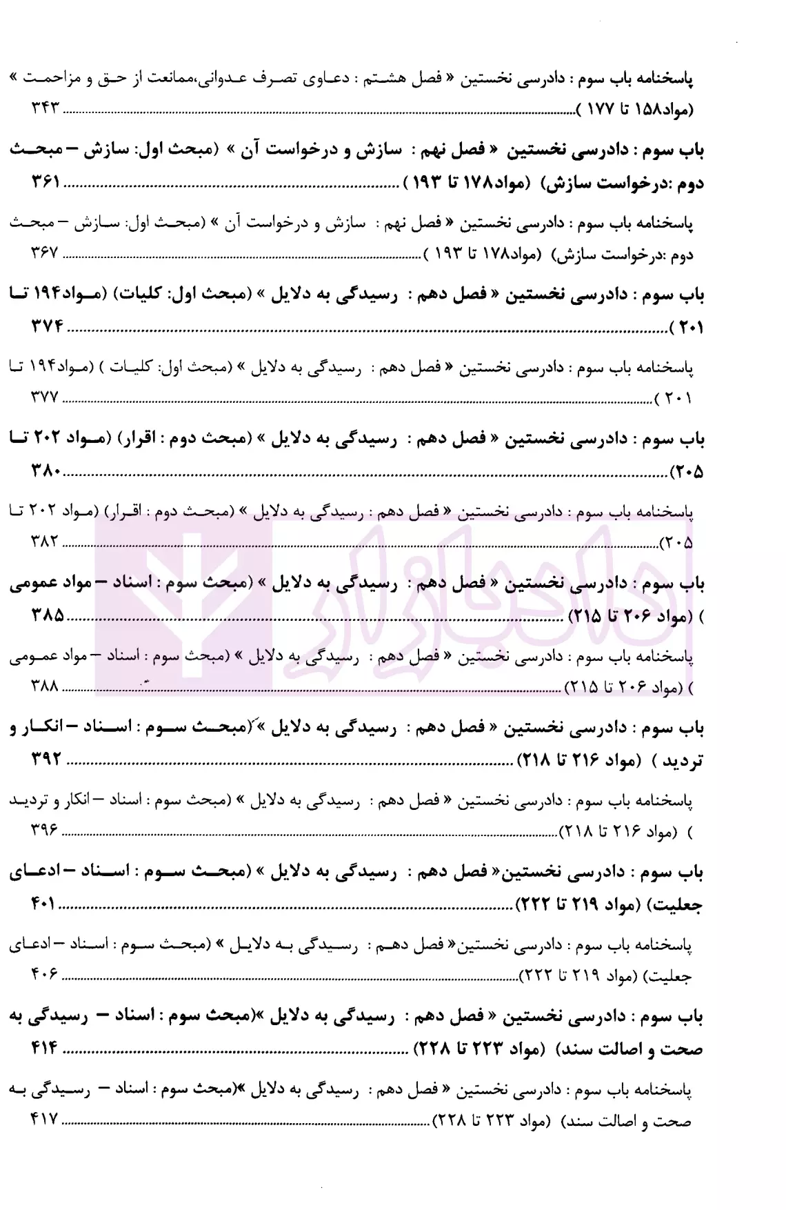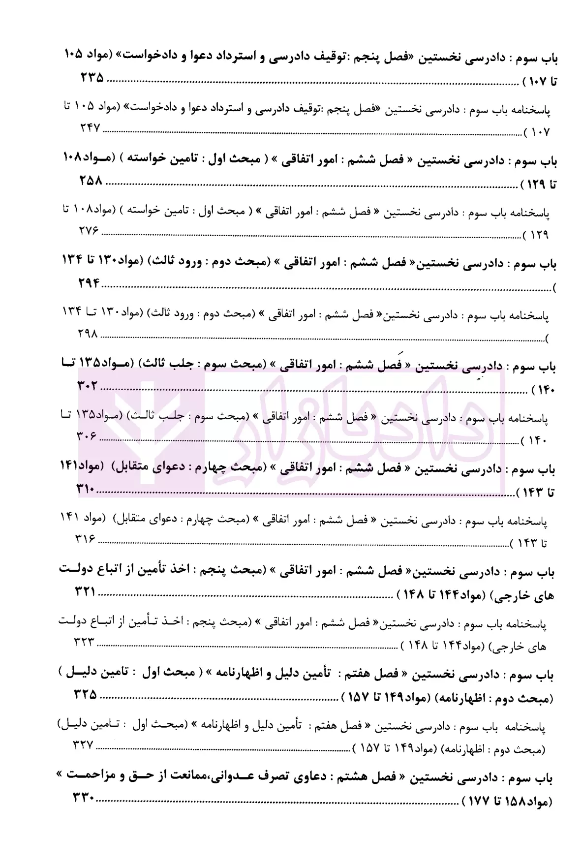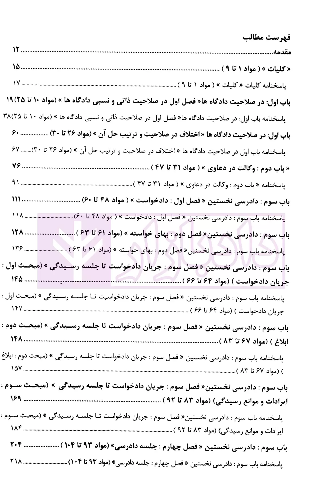 علاوه بر تست های طبقه بندی شده براساس نظم قانون آیین دادرسی دادگاههای عمومی و انقلاب امور مدنی، سوالات آزمونی و تالیفی از قوانین خاص مرتبط با آیین دادرسی مدنی ارائه شده است.