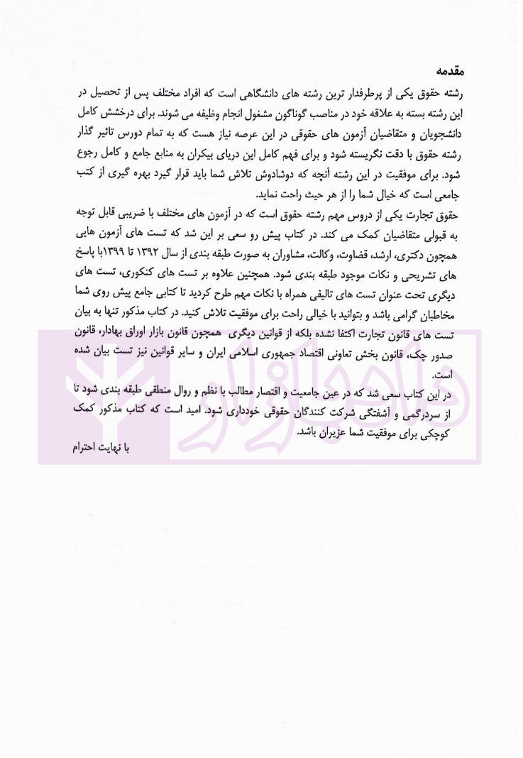 - تست های تالیفی و سنوات گذشته وکالت، کارشناسی ارشد و دکتری به همراه پاسخنامه تشریحی، نکات مهم آزمونی