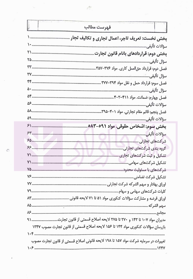 ویژگی های عمده کتاب تست حقوق تجارت خسروی